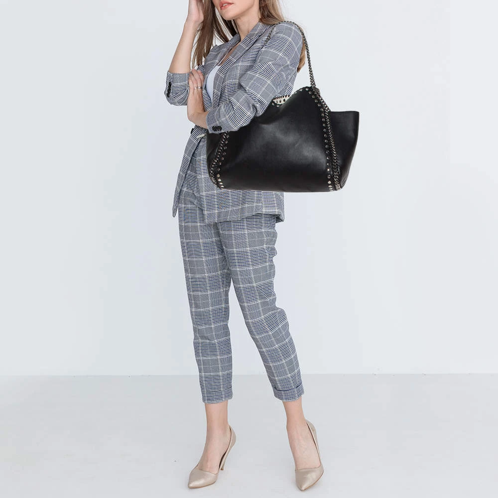 This Falabella tote from Stella McCartney will make the dream of countless women come true. Crafted from faux leather, it is durable and stylish. While the chain detailing elevate its beauty, the canvas-lined interior will dutifully hold all your daily essentials. You are sure to make hearts skip when you swing this tote using the chain handles.