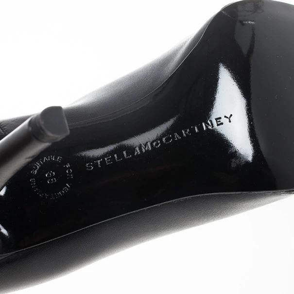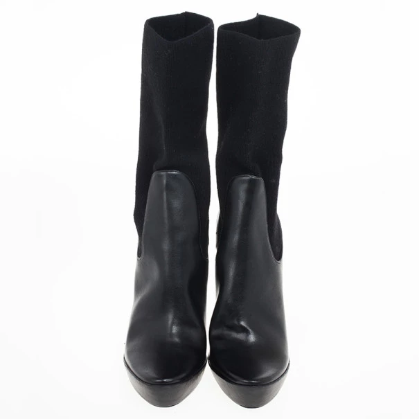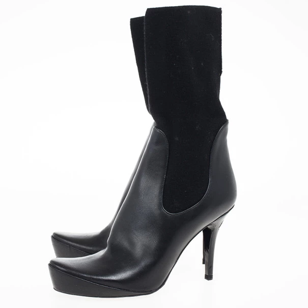 these Stella McCartney Black Leather Sock Platform Ankle Boots will add an edgy finish to your outfit. These patent leather and fabric platform boots feature pointed toes and 10 CM heels. Wear these sock boots with a skirt or a dress and glam up your look in no time!