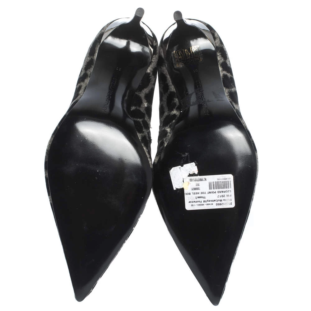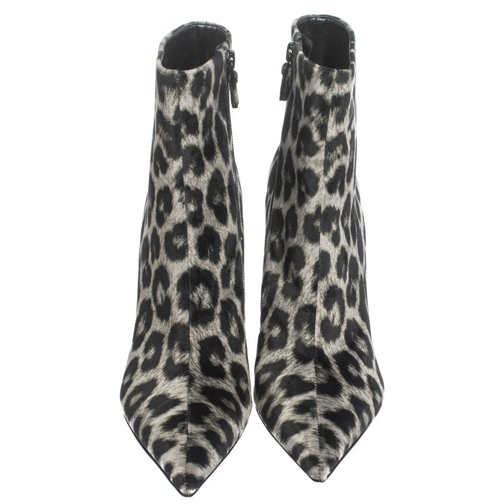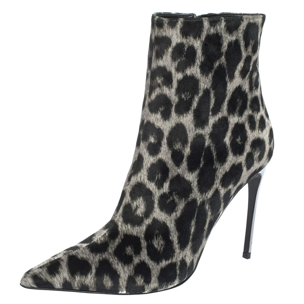 These striking ankle booties hail from the cool and stylish house of iconic designer Stella McCartney. Crafted meticulously from luxe velvet, they carry a black leopard print that is very flattering. They are styled with pointed toes, zip closures, 10 cm high heels and black-tone hardware.