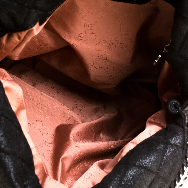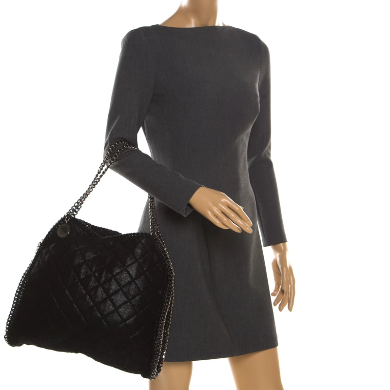Stella McCartney is known for her chic designs and this Falabella tote perfectly embodies this trait. Crafted in Italy from quilted faux leather with a fabric interior, this bag has a beautiful Shaggy Deer exterior and silver-tone chain details along its contours and as handles. This bag can be carried with your everyday outfits.