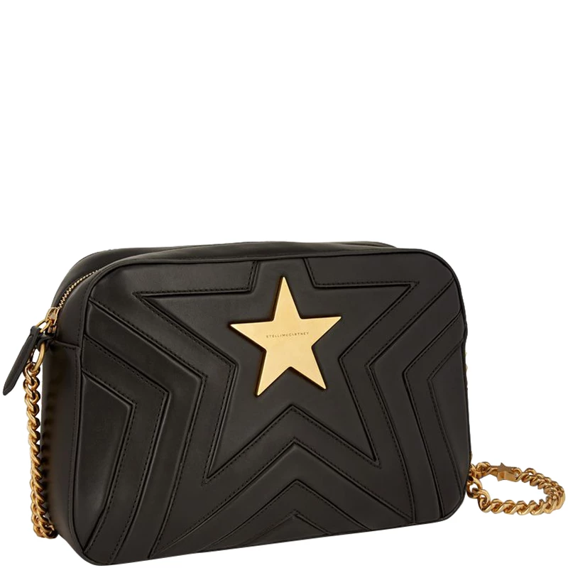 Crafted from quilted faux leather, this shoulder bag by Stella McCartney is handy and right on style. It has a small star on the front, a faux suede interior secured by a zipper and a chain handle.
