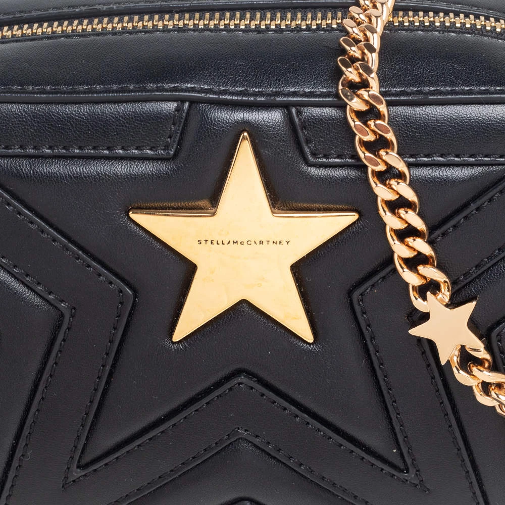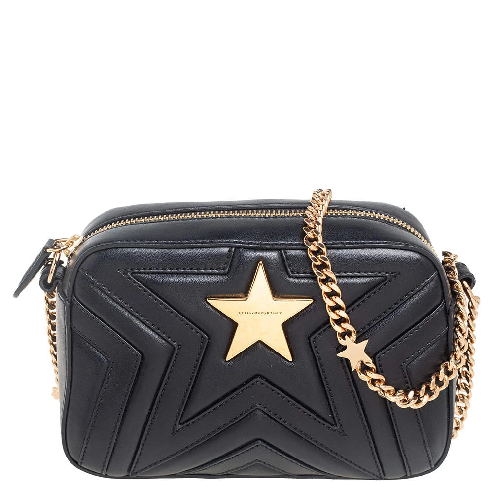 Coming from the House of Stella McCartney, this Stella Star crossbody bag will help your style sparkle! It is made from black quilted faux leather on the exterior and comes with a gold-toned star motif embellishment on the front. It has a faux suede-lined interior and a sturdy chain strap.