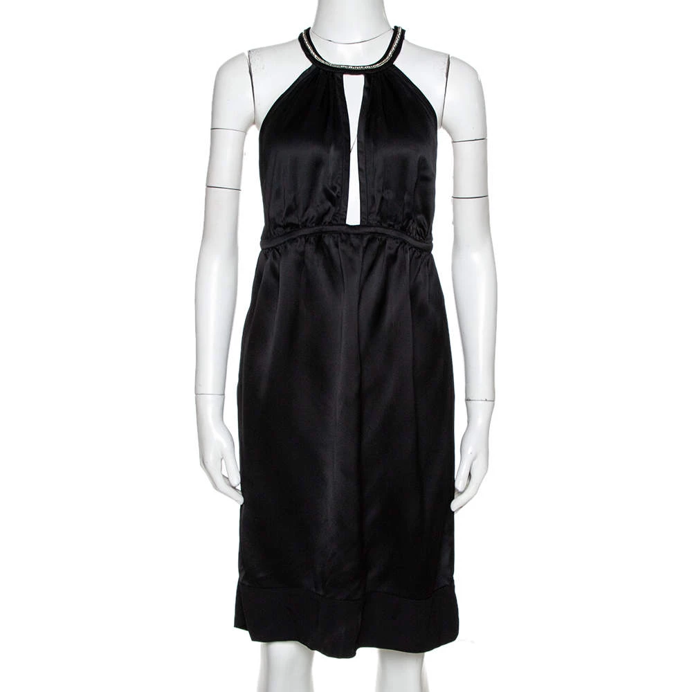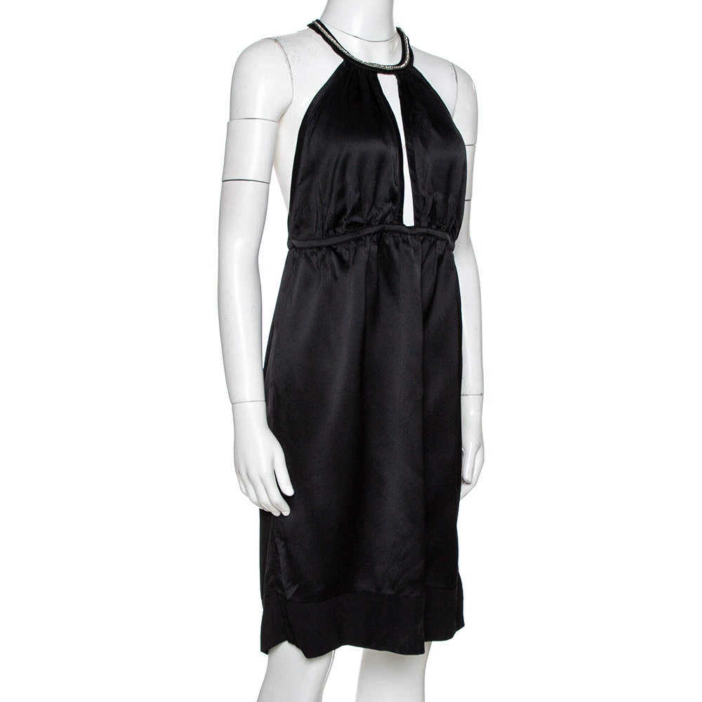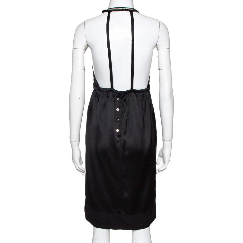 This minimalistic piece from Stella McCartney is sleek, stylish and versatile. Designed to be feminine with a classic black body, it has a halter style with an embellished neckline and a deep cut-out in the front. Made from quality fabric, it is comfortable to wear and is secured with button closures.