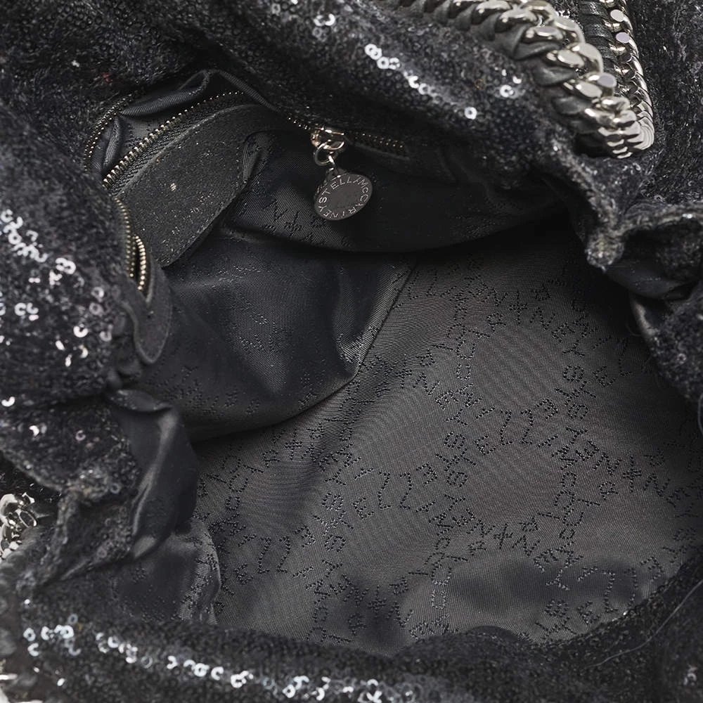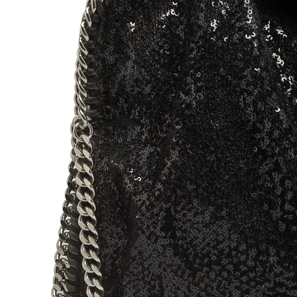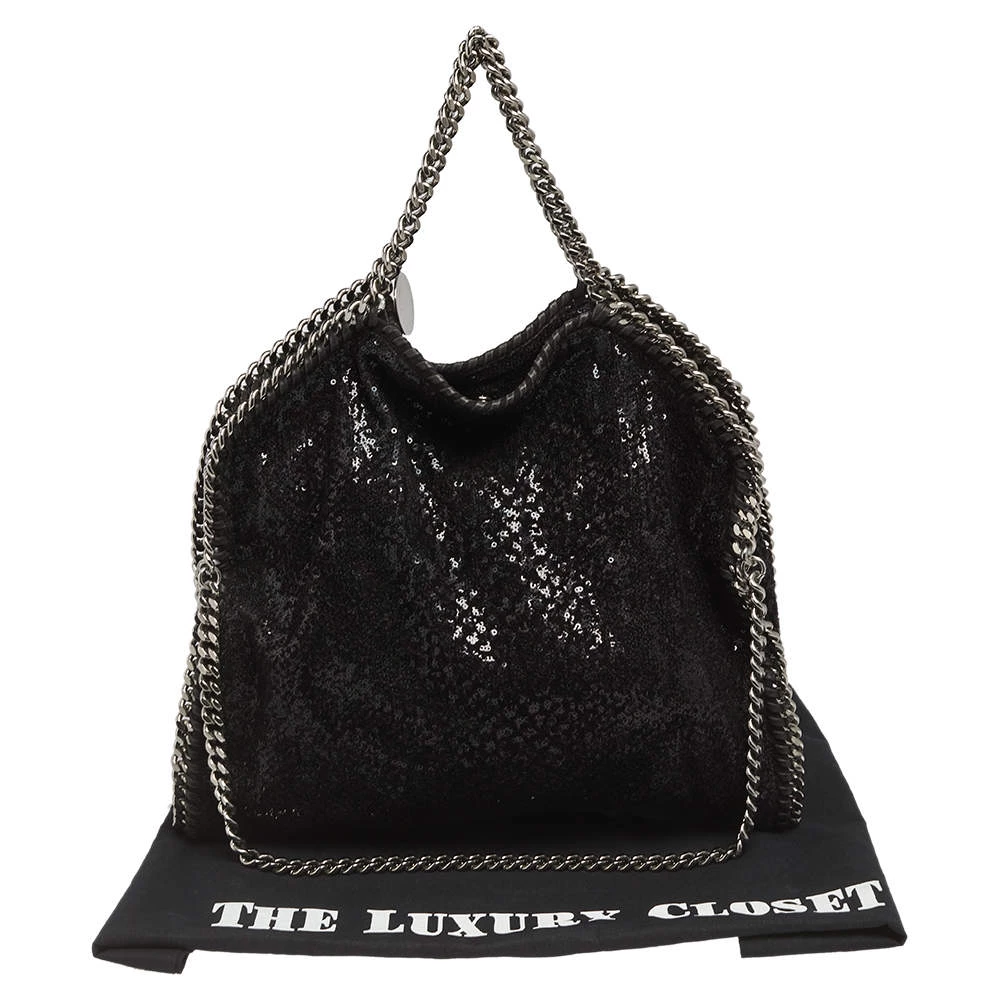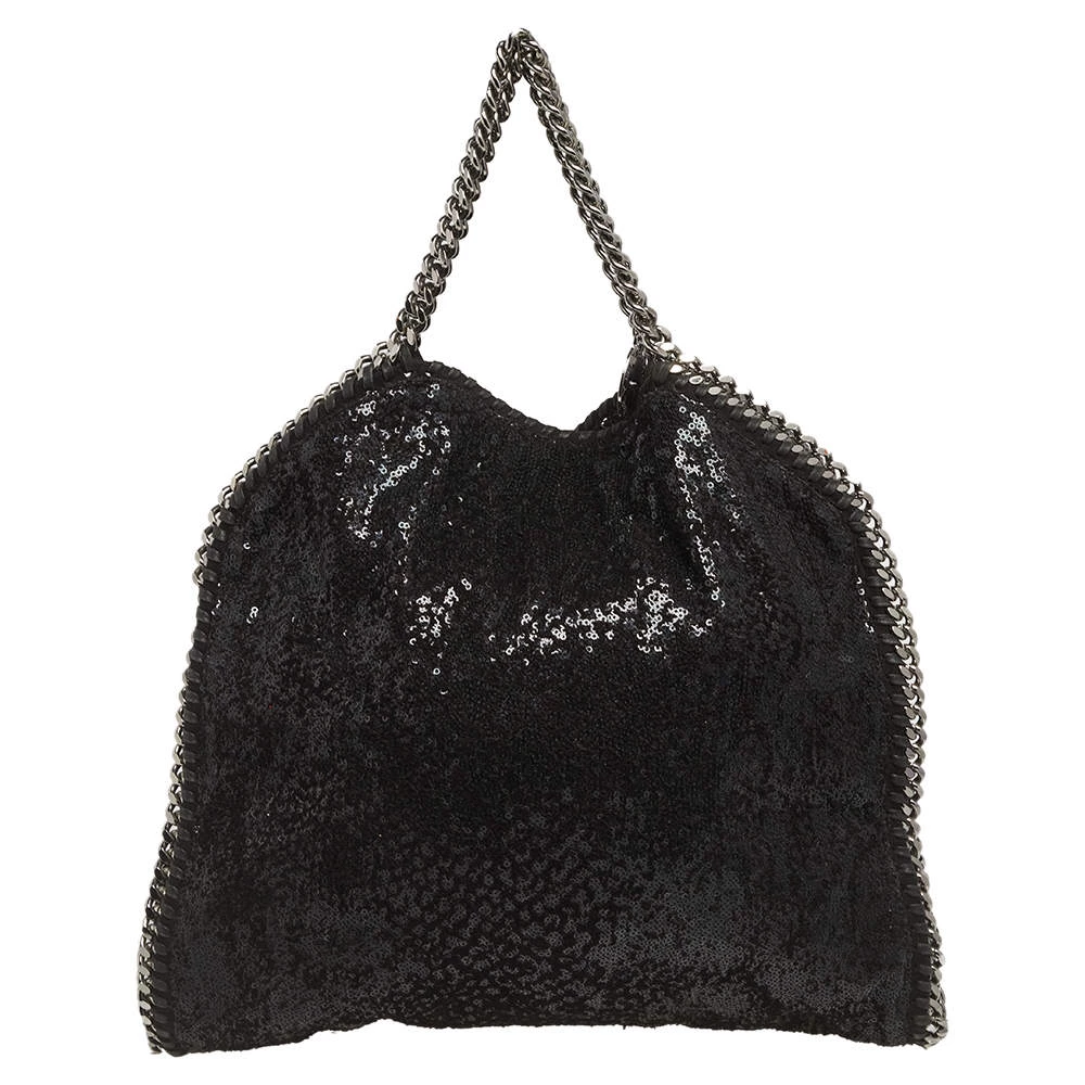 This Falabella tote from Stella McCartney is one of the most loved designs from the sustainably conscious label. This version is designed with black sequins. While the chain detailing elevate its beauty, the fabric-lined interior will dutifully hold all your daily essentials. You can swing this tote using the chain handles.