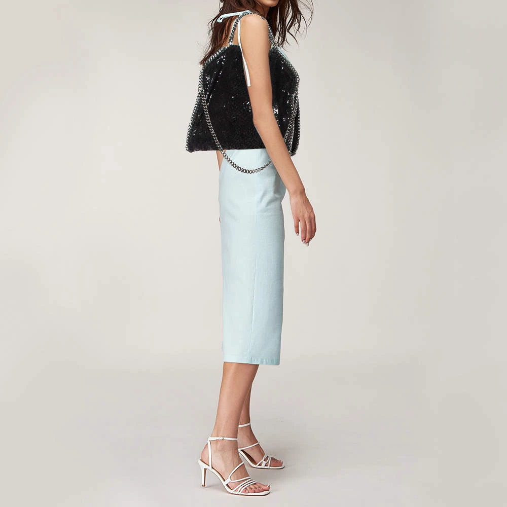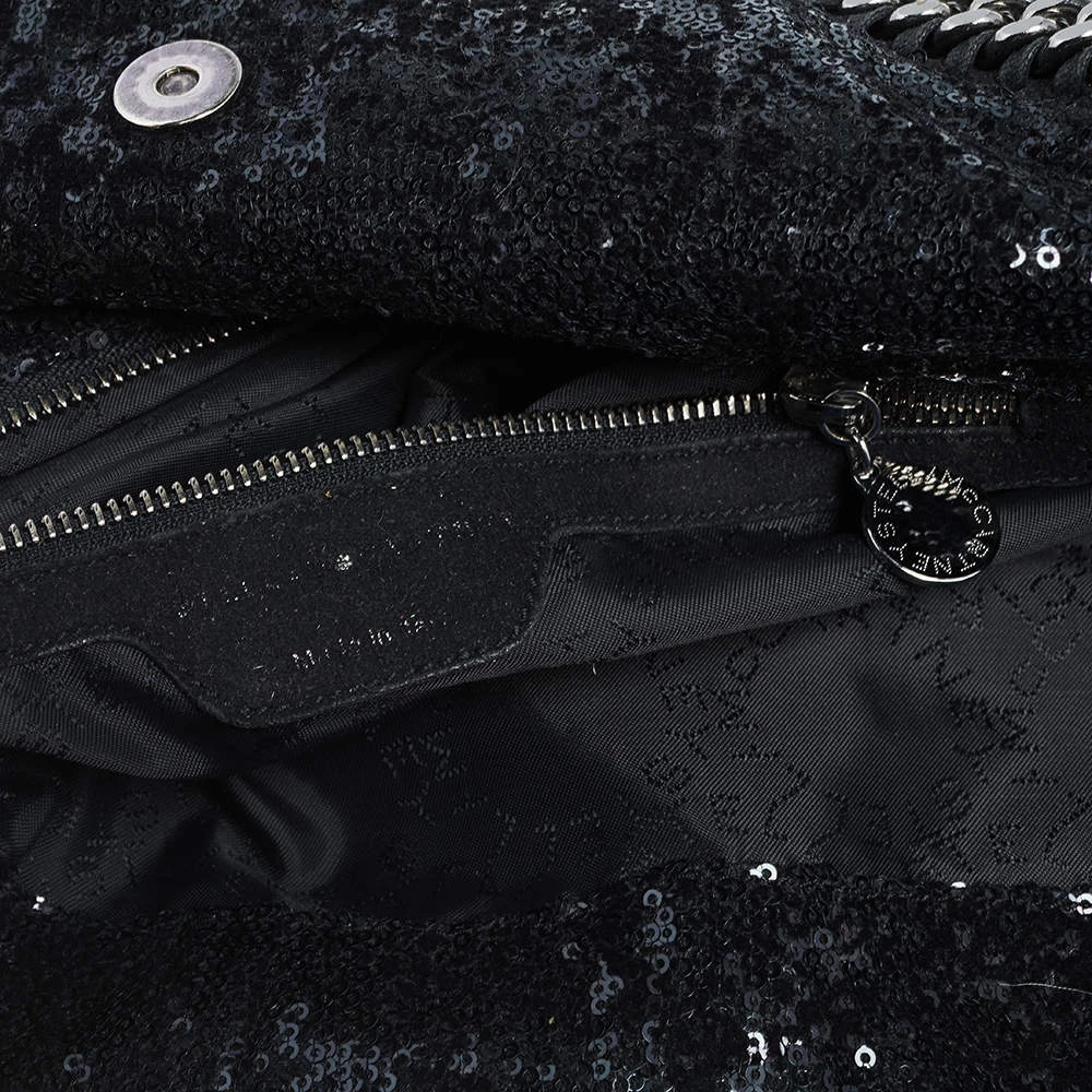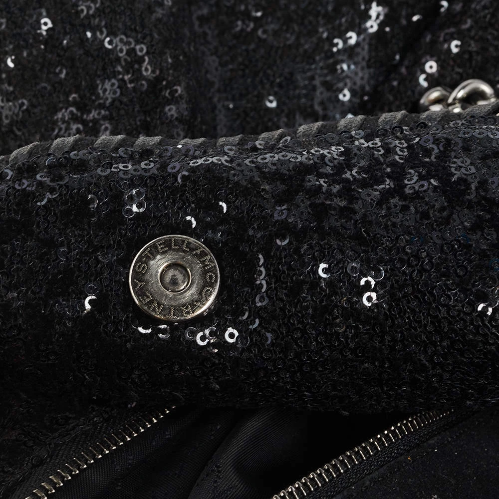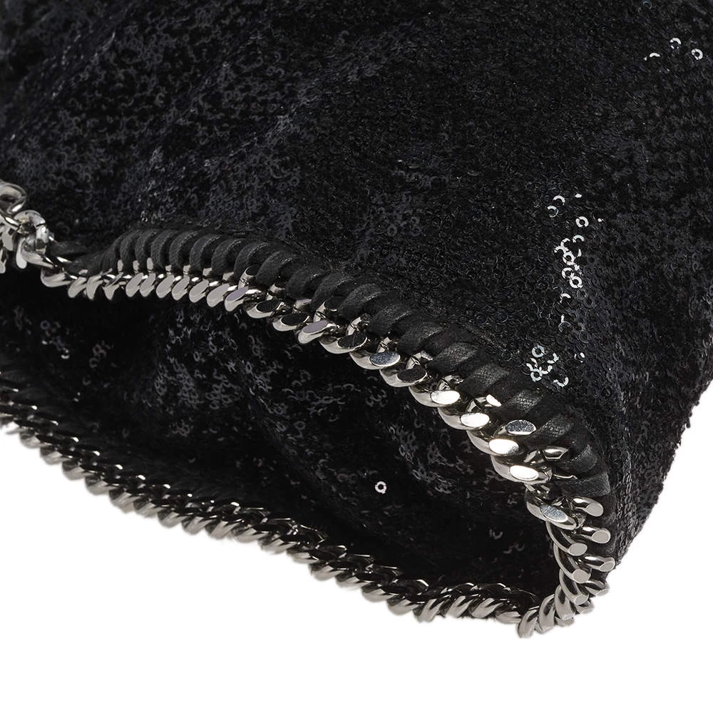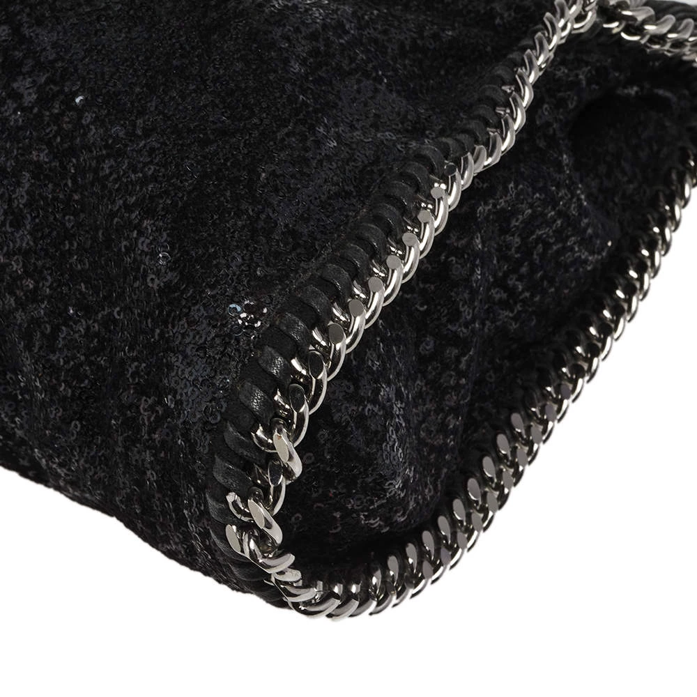 This Falabella tote from Stella McCartney is one of the most loved designs from the sustainably conscious label. This version is designed with black sequins. While the chain detailing elevate its beauty, the fabric-lined interior will dutifully hold all your daily essentials. You can swing this tote using the chain handles.
