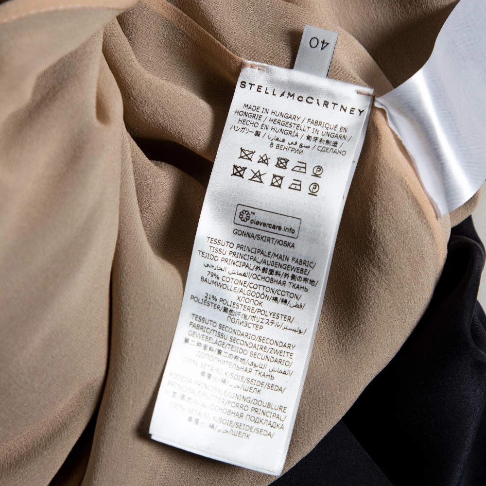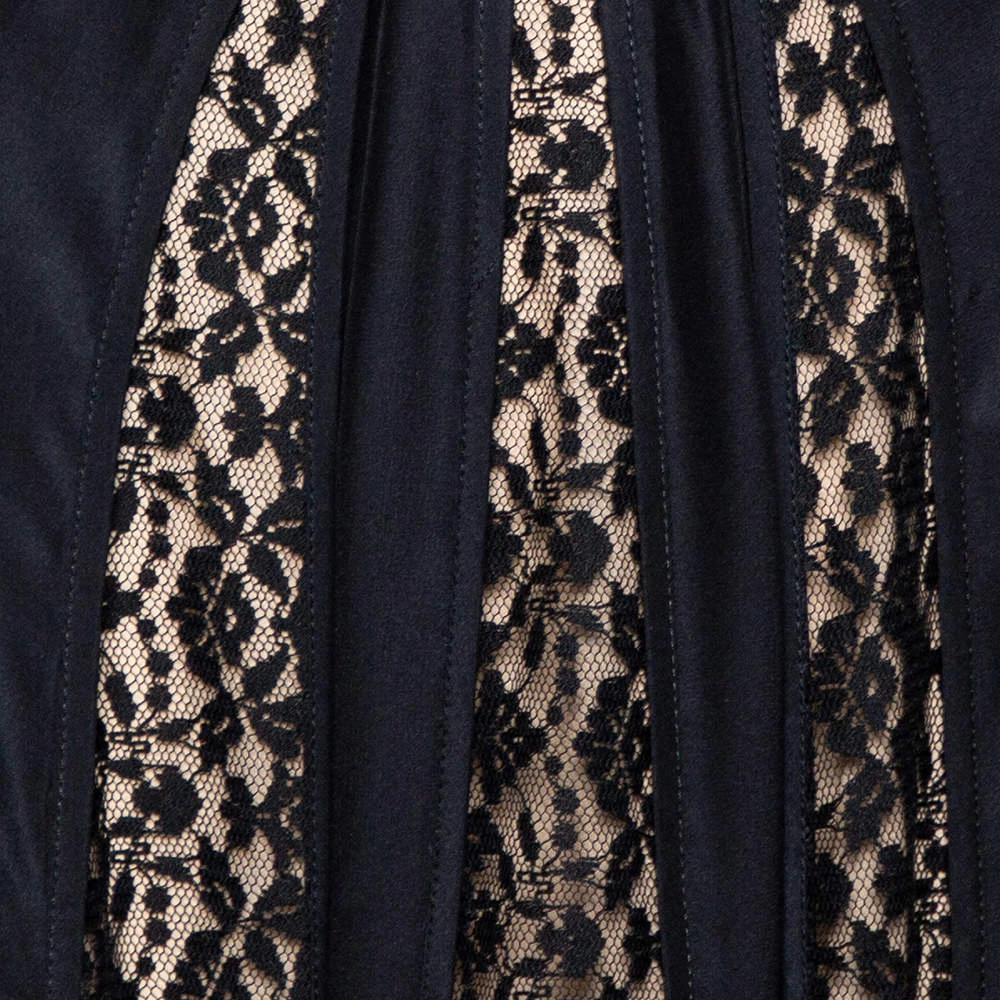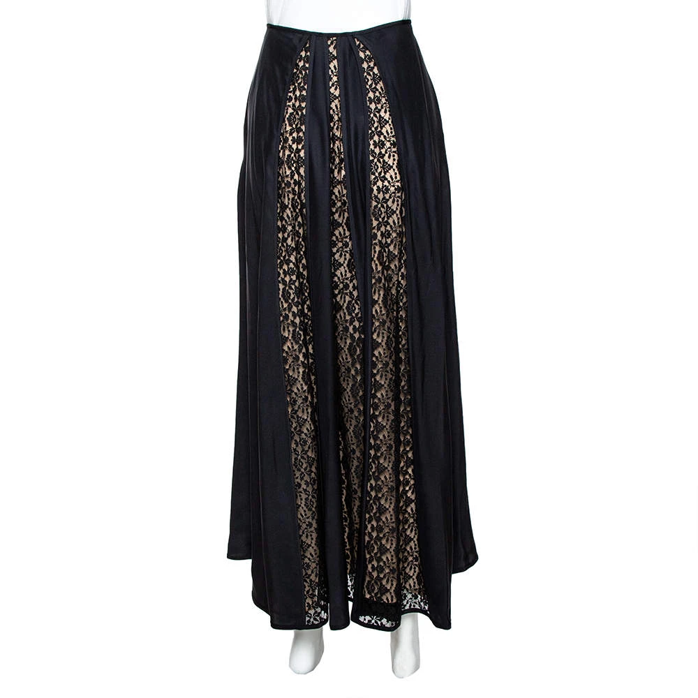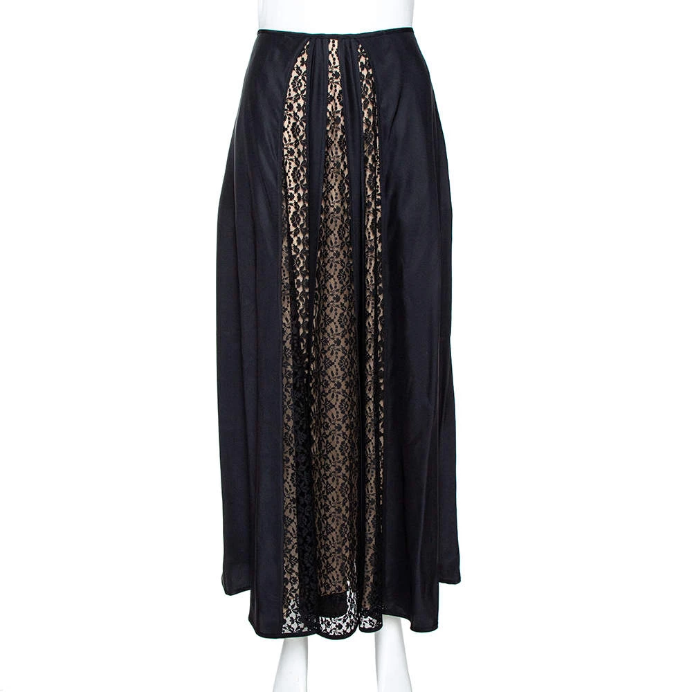Stella McCartney brings you this wonderful skirt. It comes made into a lovely shape with lace panels that add a nice contrast to the black silk. You can wear it with a plain top or blouse and a pair of elegant sandals.
