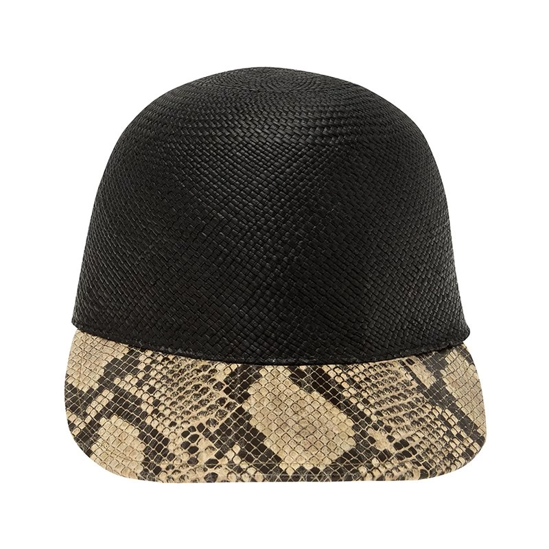 This black straw and faux python baseball cap from the luxury brand, Stella McCartney, is functional and sustainable. It is tailored with the signature style of the brand and is very feminine. It is fashionable and gives the humble baseball cap a twist. The athletic cap exudes luxury in every way.