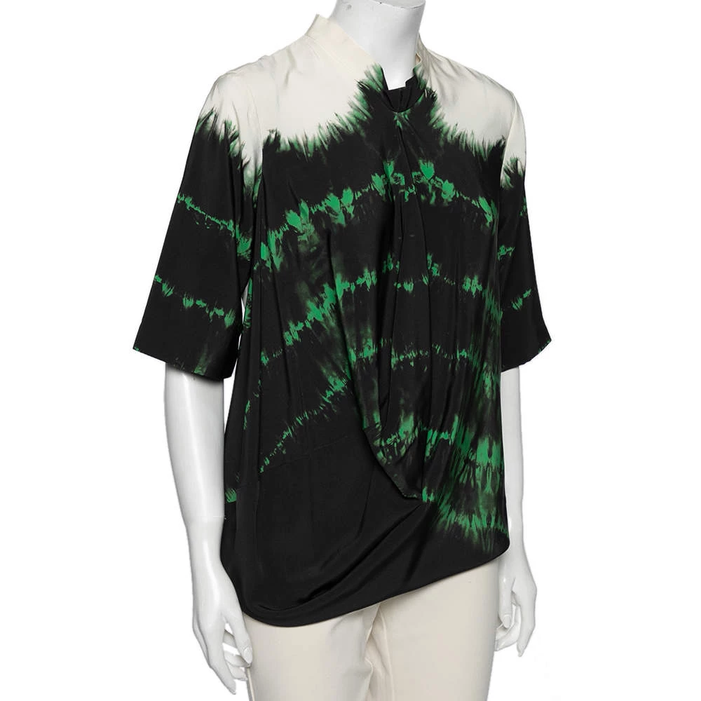 Upgrade your style quotient with this trendy tie-dye blouse from Stella McCartney. It is skillfully crafted from silk and has a gorgeous, asymmetrical draped front that adds a unique touch. It is the perfect day-to-night piece and is complete with a zip closure.