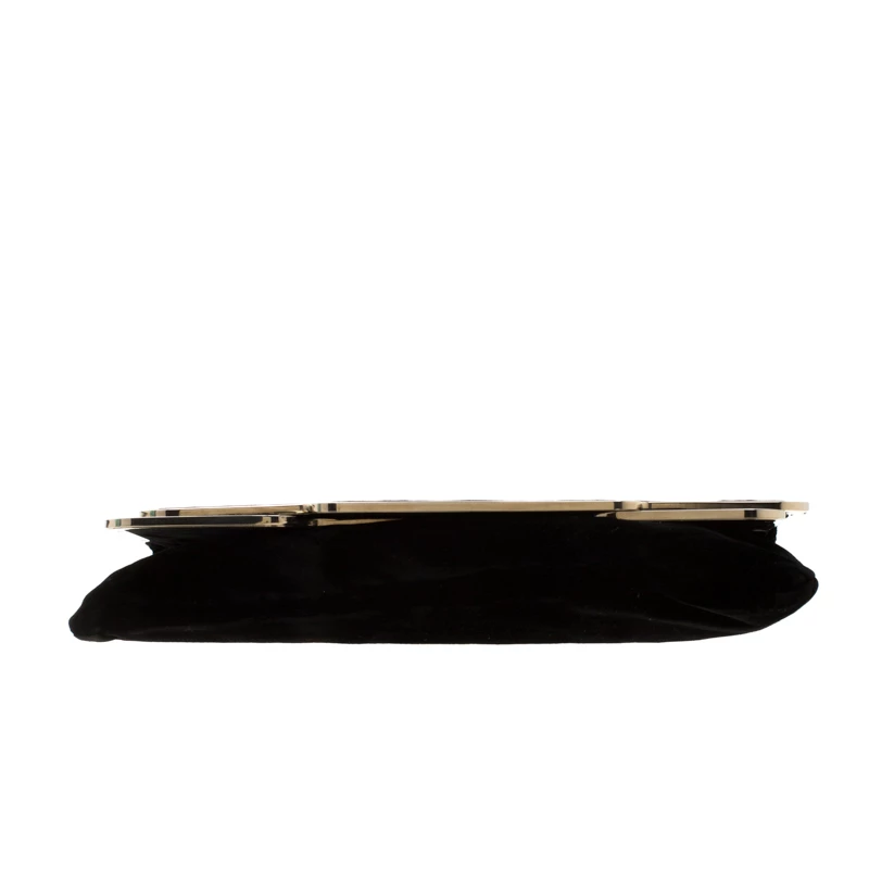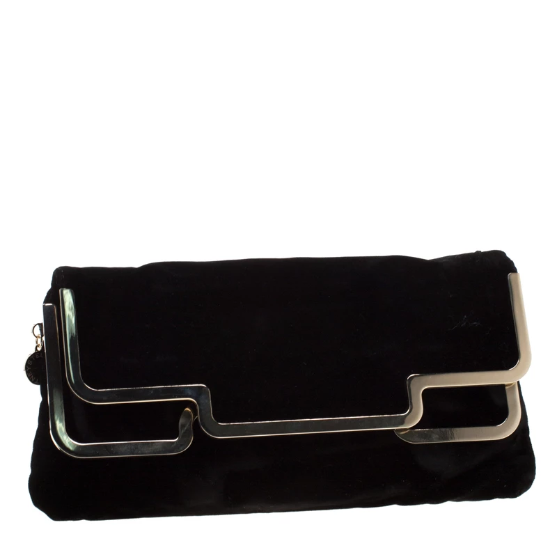 Keep it simple and classy as you carry your essentials in a gorgeous accessory that complements your dress perfectly. This Stella McCartney clutch features a luxurious velvet body with gold-tone metal detailing on the flap and a satin interior.