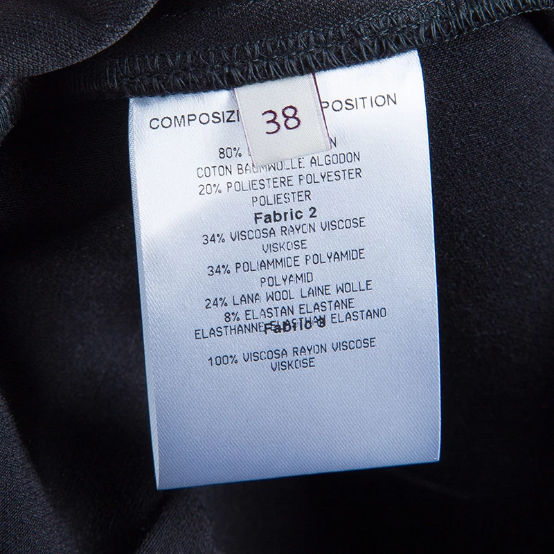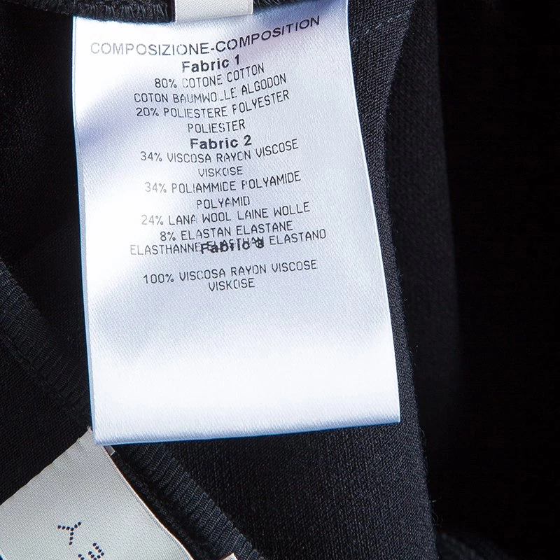 - Fabric: Fabric A : 80% Cotton , 20% Polyester ; Fabric B : 34% Viscose , 34% Polyamide , 24% Wool , 8% Elastane ; Fabric C : 100% Viscose