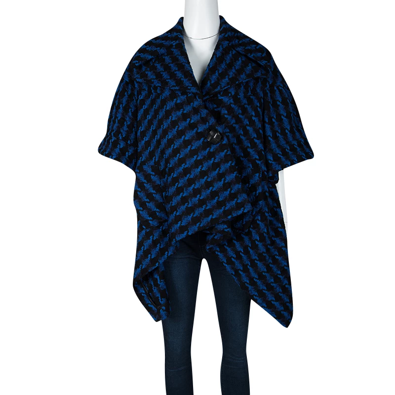 Cheerful, fun and stylish, this Stella McCartney jacket is tailored in a blue and black wool body with an uneven hemline that lends it an interesting structure. It features a subtly flap silhouette secured with a front button closure. It comes with short sleeves and can be styled as an outerwear for those slightly chilly days.