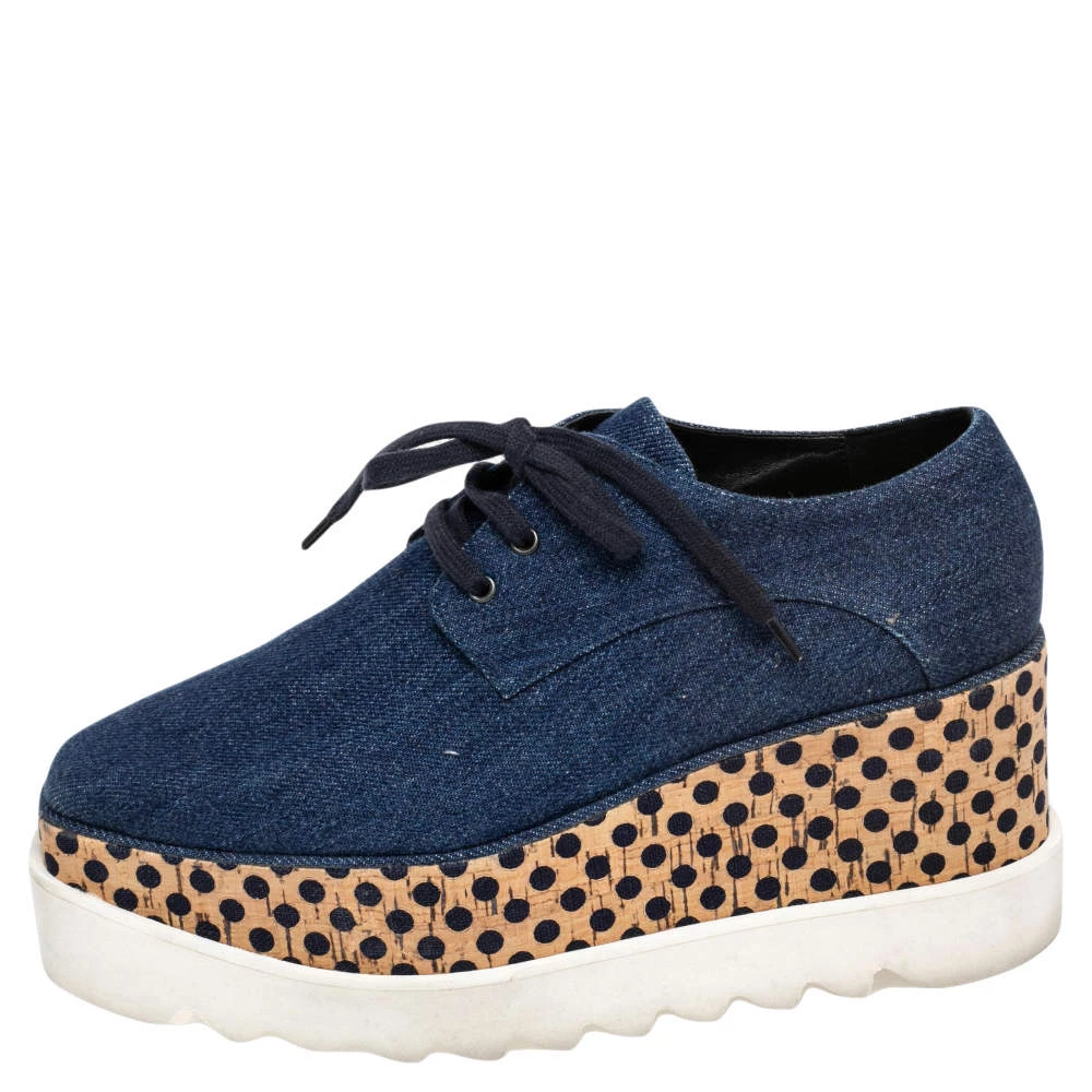 Stella McCartney exudes her high style and unique fashion taste with these Elyse shoes. They are brimming with exquisite details like the denim and faux leather exterior, the laces, and the thick polka-dotted platforms. Grab this pair today and let it help you express your fabulous style.