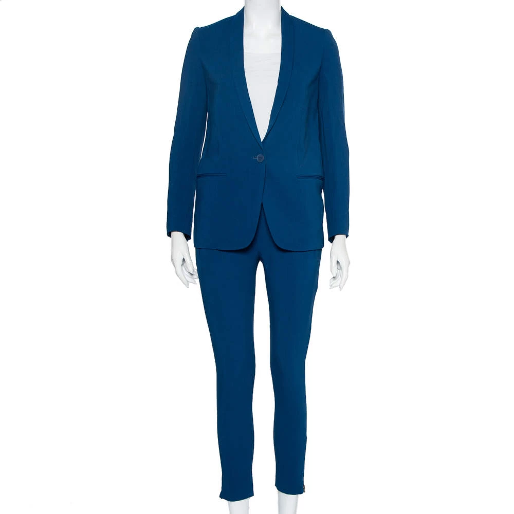 This Stella McCartney pantsuit is brilliantly tailored from blue-hued crepe. The suit features a button closure, slit pockets and sleek lapels. The trousers feature zip detailing near the hemline. Pair with a flattering top and high heels for a formal look.