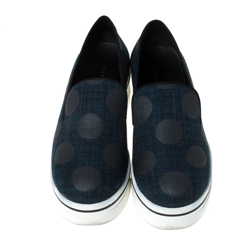 Stella McCartney Blue Denim Binx Slip On Platform Sneakers Size 38 For Women