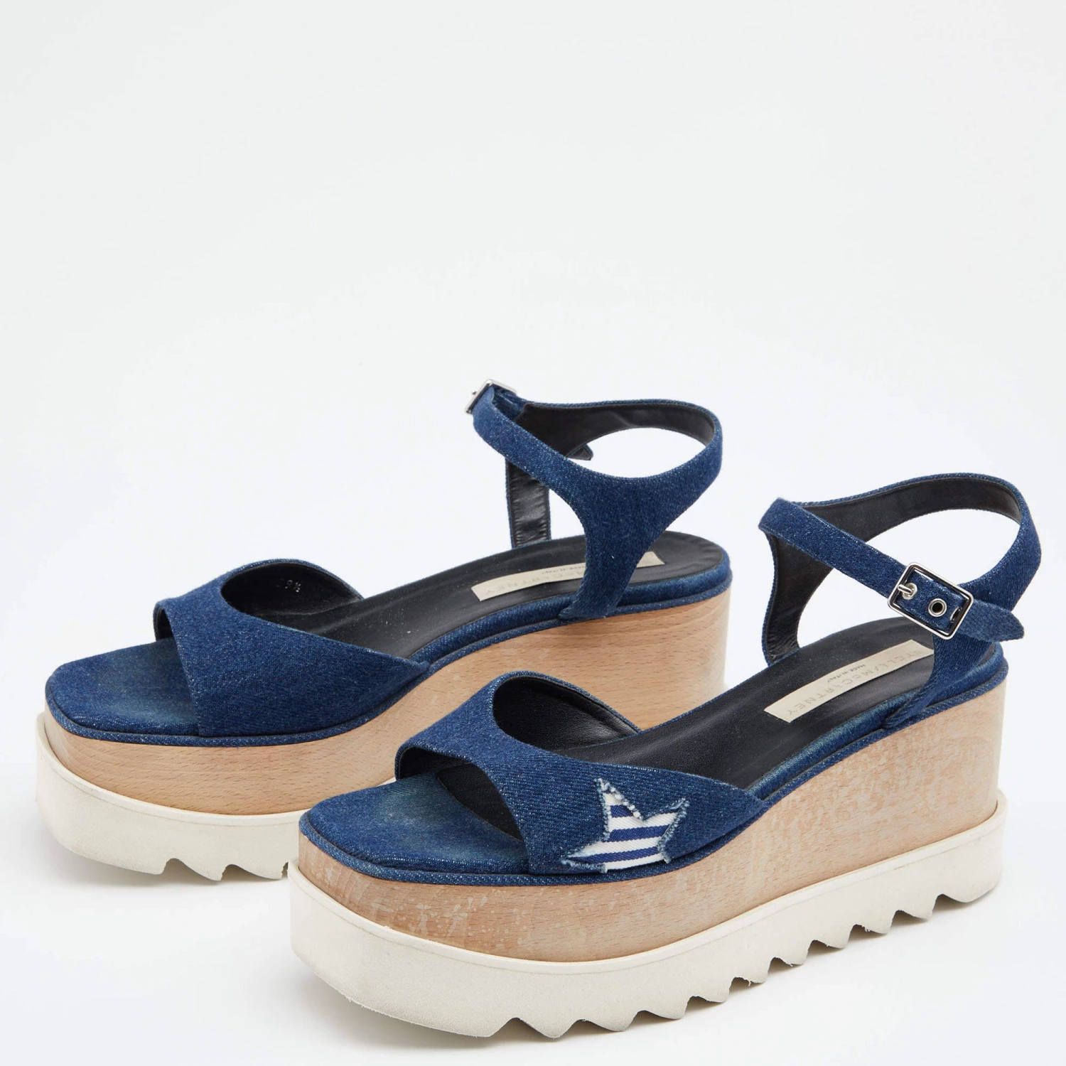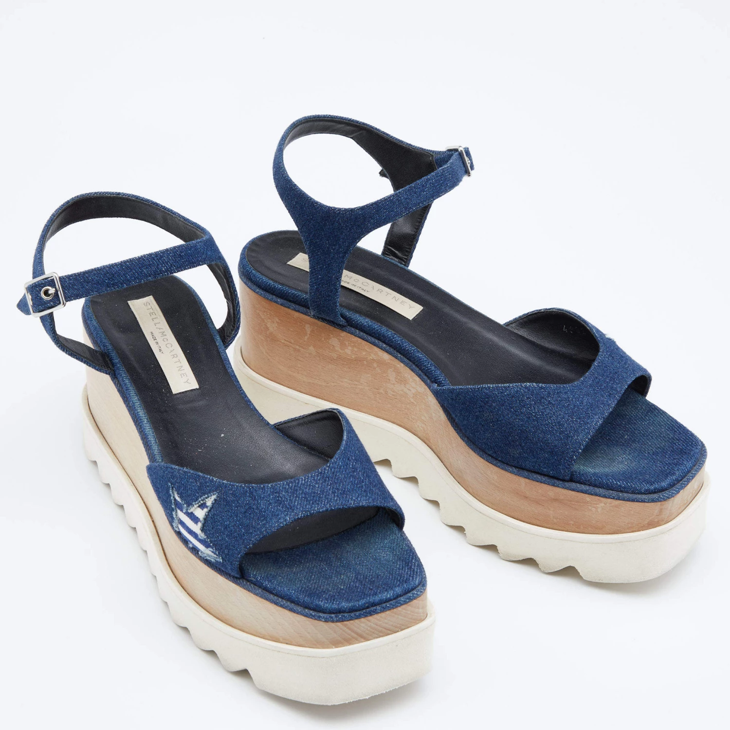 Get your summer edit ready with these sandals from Stella McCartney. They’re crafted from denim in an open-toe style and added with ankle buckle closure and stacked platforms.