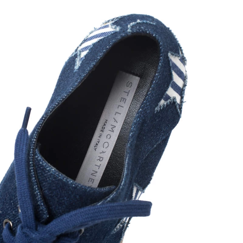 Stella McCartney exudes her high style and unique fashion taste with these Elyse Star derby shoes. They are brimming with exquisite details like the star details on the blue denim exterior, the lace-ups, 5.5 cm thick platforms and 8 cm wedge heels. Grab this pair today and let it help you express your fabulous style.