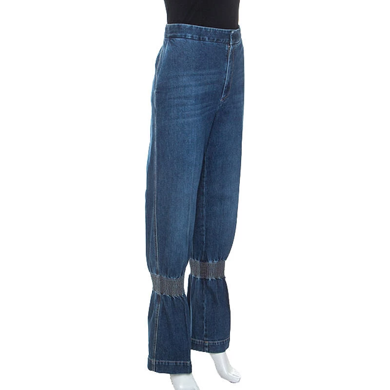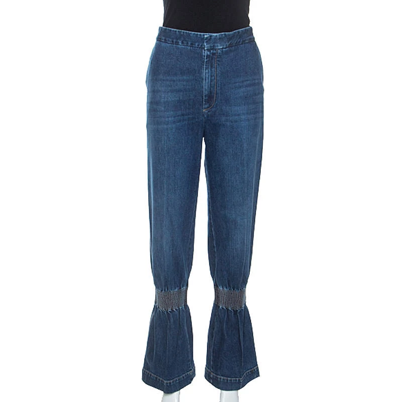 We have our eyes on this pair from Stella McCartney as it is very fashionable. The jeans come made from blue denim and feature shirred detailing. You can pair it with a simple shirt and heels or flats.