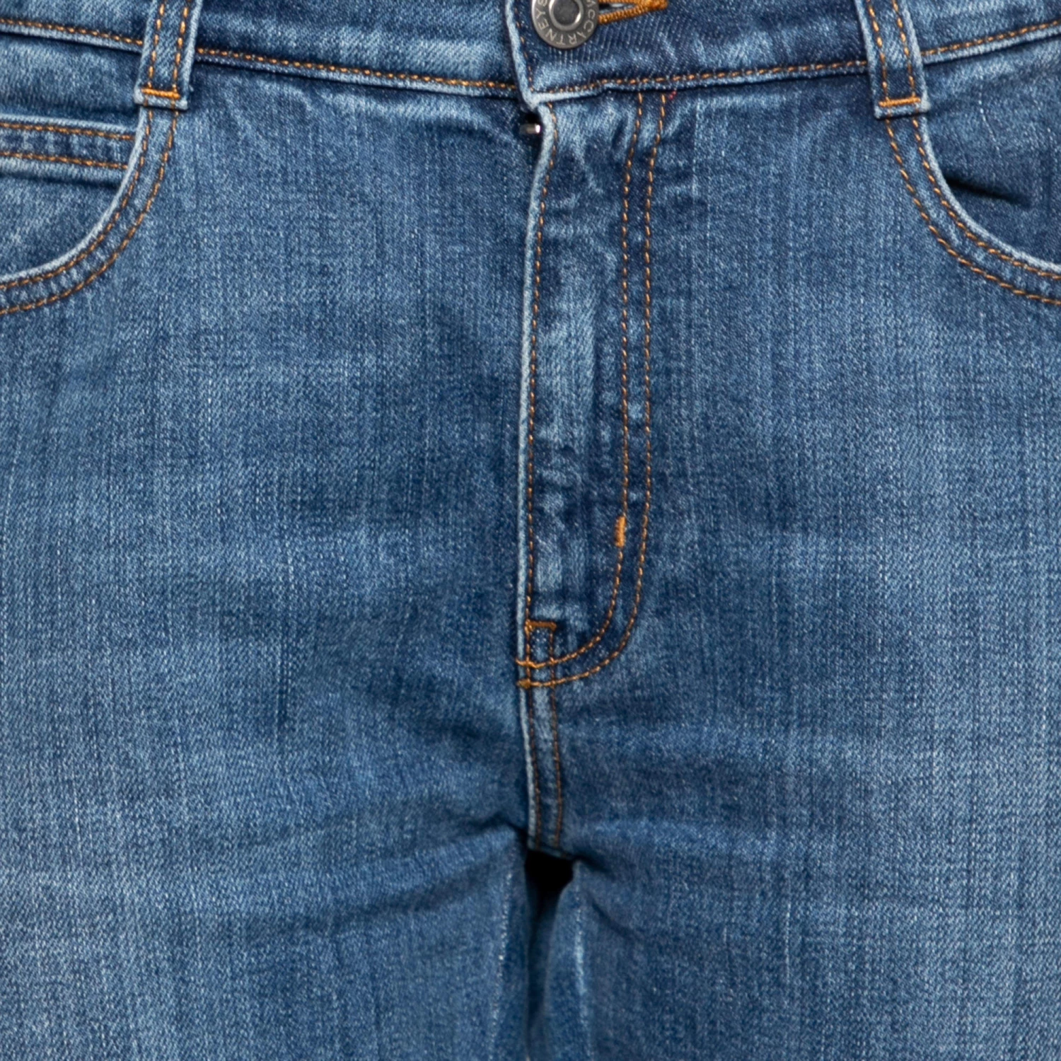 These Stella McCartney pants project an elegant appeal through the use of fine tailoring and simple detailing. The comfortable pair in blue denim, fitted with side panels, pockets, and a buttoned closure, is bound to give you a great fit.