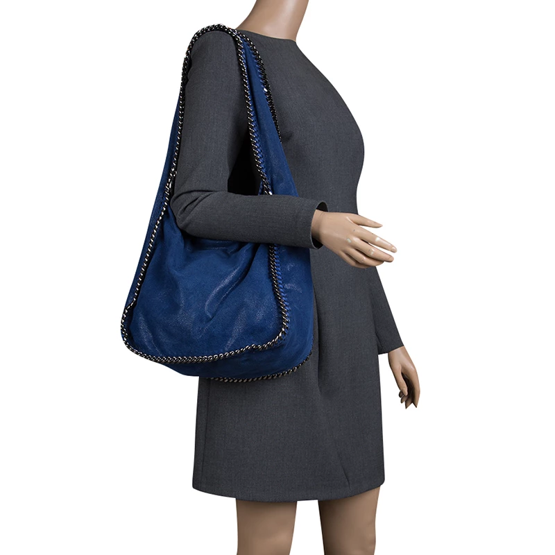 Stella McCartney is known for her chic designs and this Falabella hobo perfectly embodies this trait. Crafted in Italy from blue faux leather, it features a fabric interior and black tone chain details on its contours and handle. This bag can be carried with your everyday outfits.