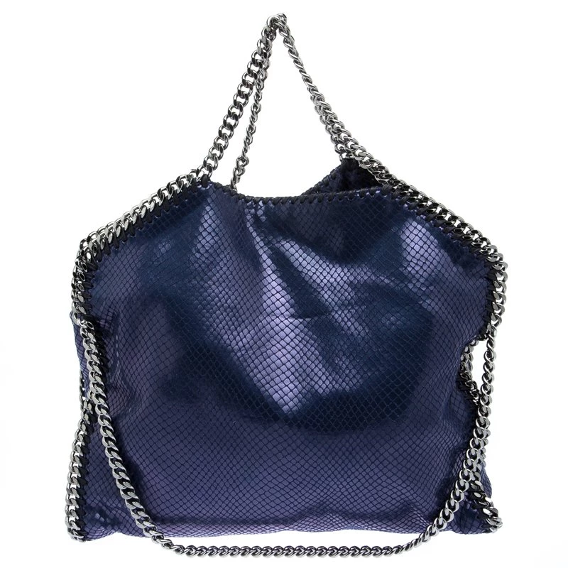 Stella McCartney is known for her feminine and sophisticated designs and this chic Falabella tote perfectly embodies this trait. Crafted from faux python with a fabric interior, this tote has a beautiful blue exterior and silver-tone chain details at its contours and as handles. It also features the signature logo engraved charm.