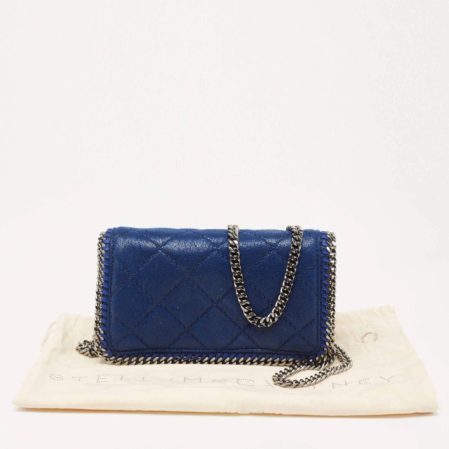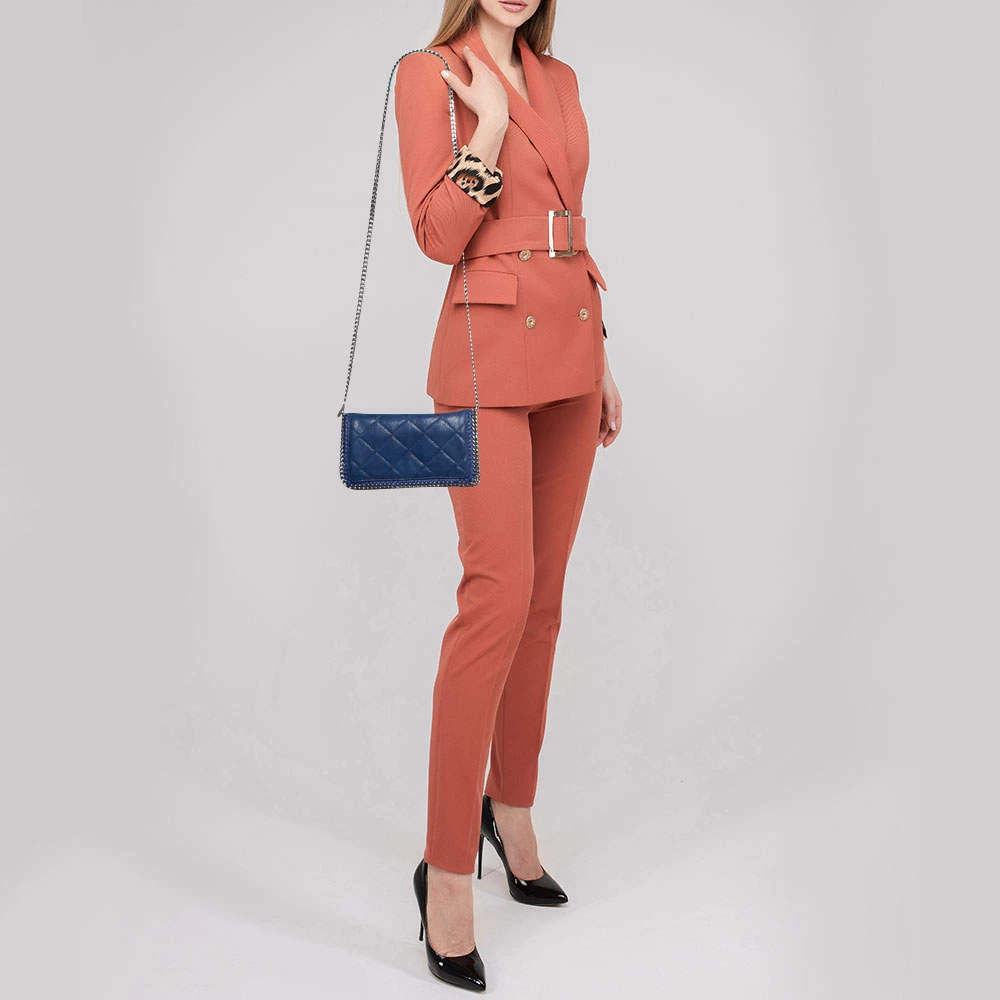 Elegance meets luxury in this Falabella shoulder bag from House of Stella McCartney. It is created using blue quilted faux suede on the exterior. It has a roomy fabric-lined interior, gunmetal-tone hardware, and a 57 cm strap. This bag will elevate the look of your outfit immediately!