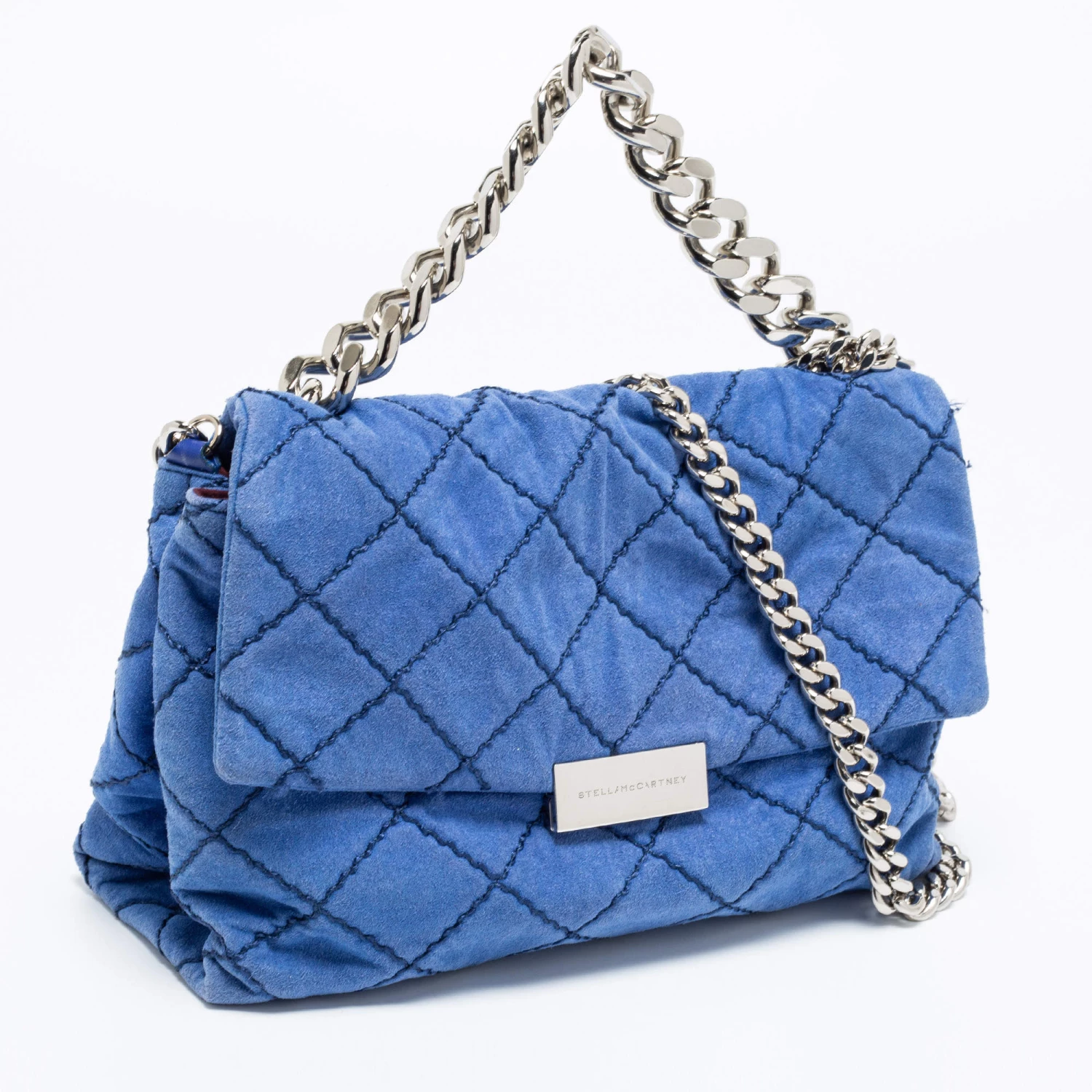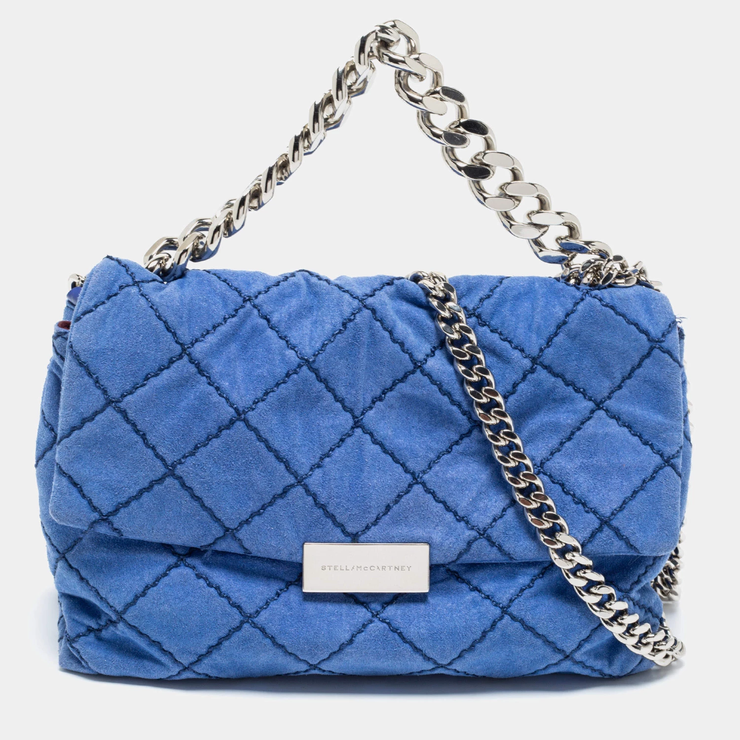Stella McCartney’s Beckett bag has a ‘tres chic’ attitude. Crafted from quilted faux suede in a soft beige hue, this medium-sized bag features two types of chain handles for versatile styling.