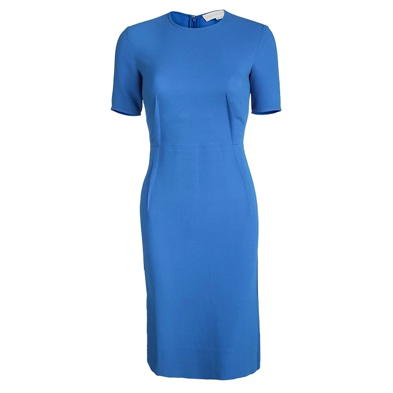This Hungarian dress from Stella McCartney is sure to enchant and mesmerize you. In a beautiful blue shade, this dress is made of a viscose blend and features a well defined silhouette. It flaunts a round neckline, subtle pleates at the sides, short sleeves and a concealed zip closure at the back. It is perfect to make a bold statement and can be paired well metallic pumps and an embellished cocktail ring.