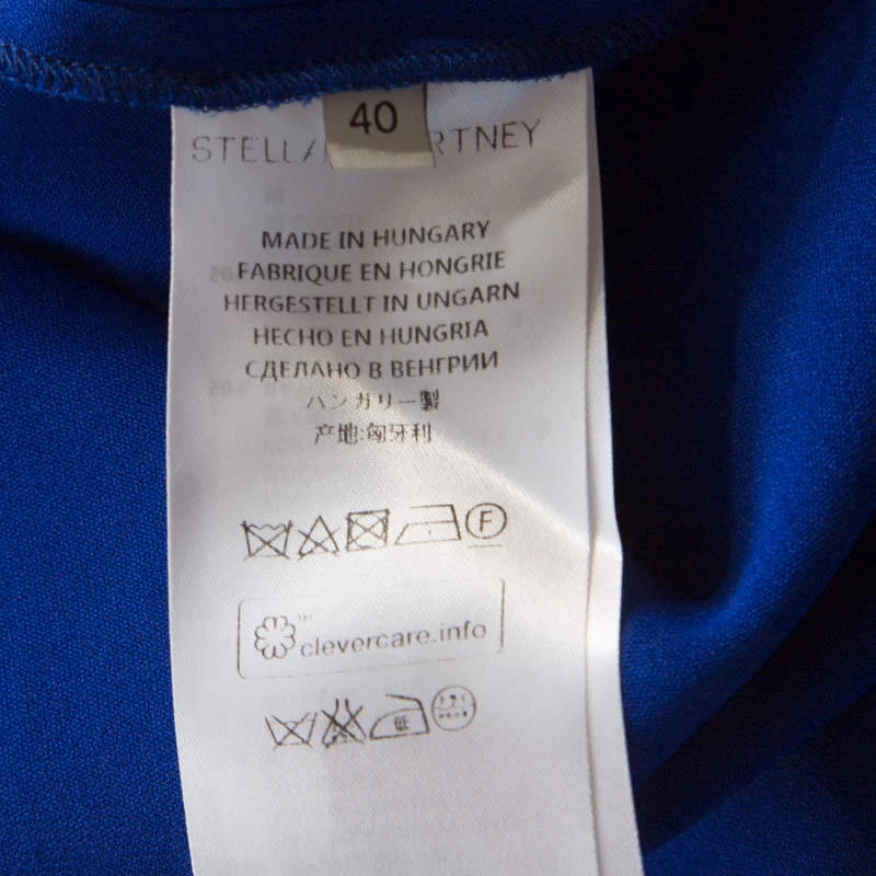 This flared dress from the house of Stella McCartney is a staple. Jazz up your style by picking this blue dress which will be a timeless addition to your collection. It features short sleeves, a V neckline and an asymmetric hemline.