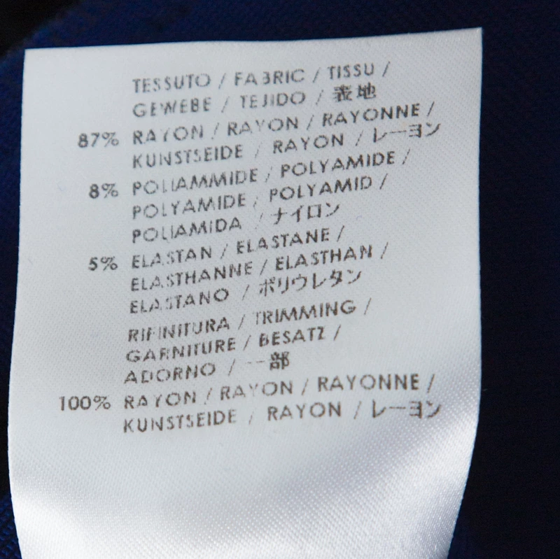 - Fabric: Main Fabric: 87% Rayon, 8% Polyamide, 5% Elastane; Trimming: 100% Rayon