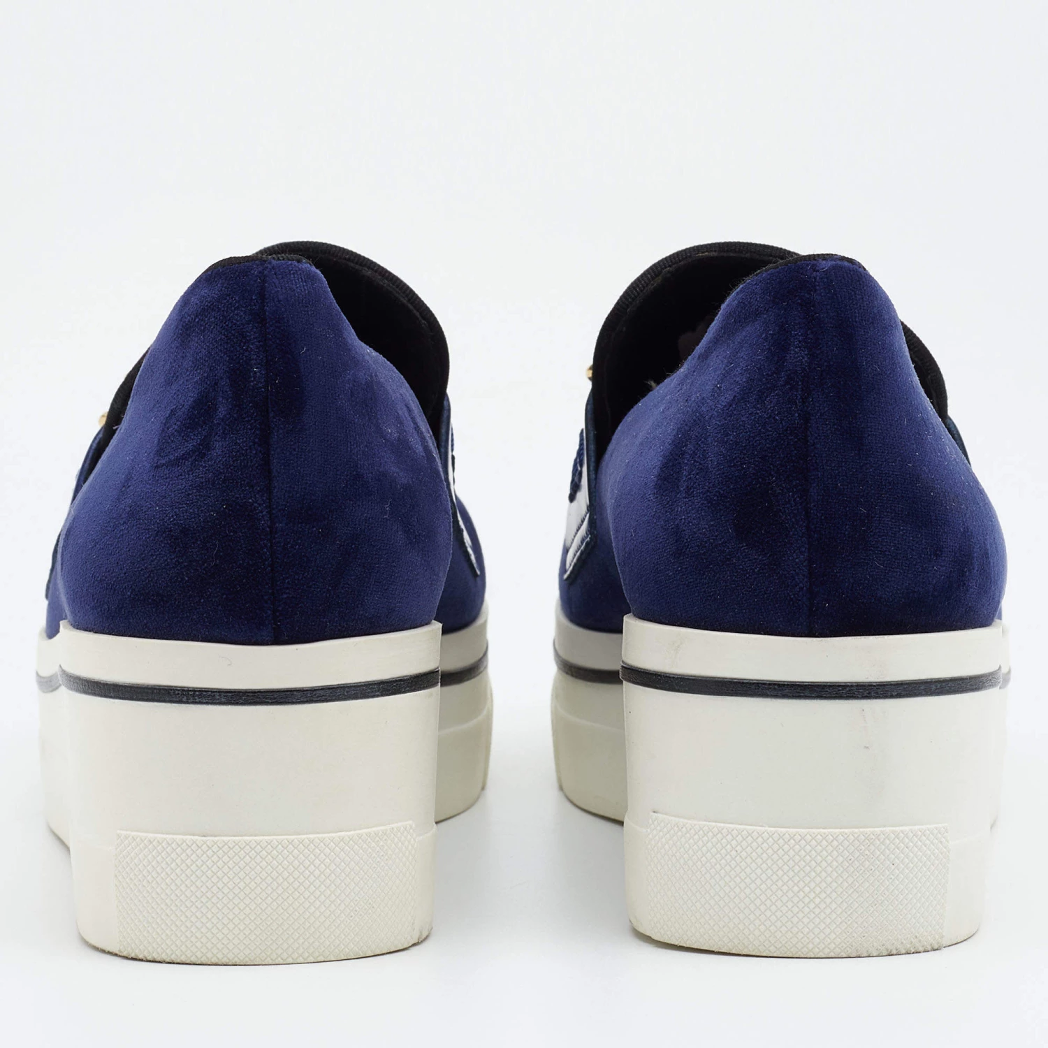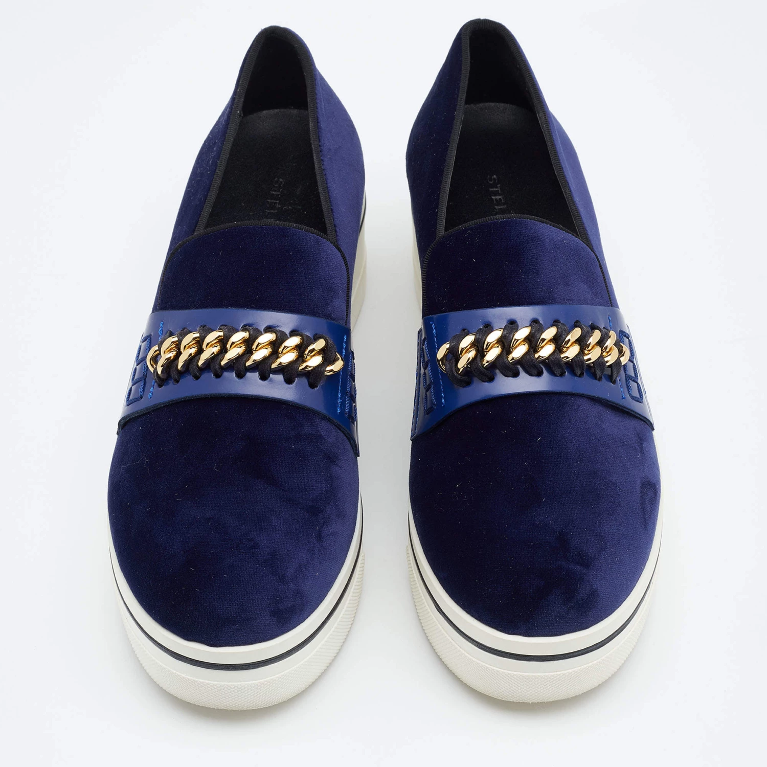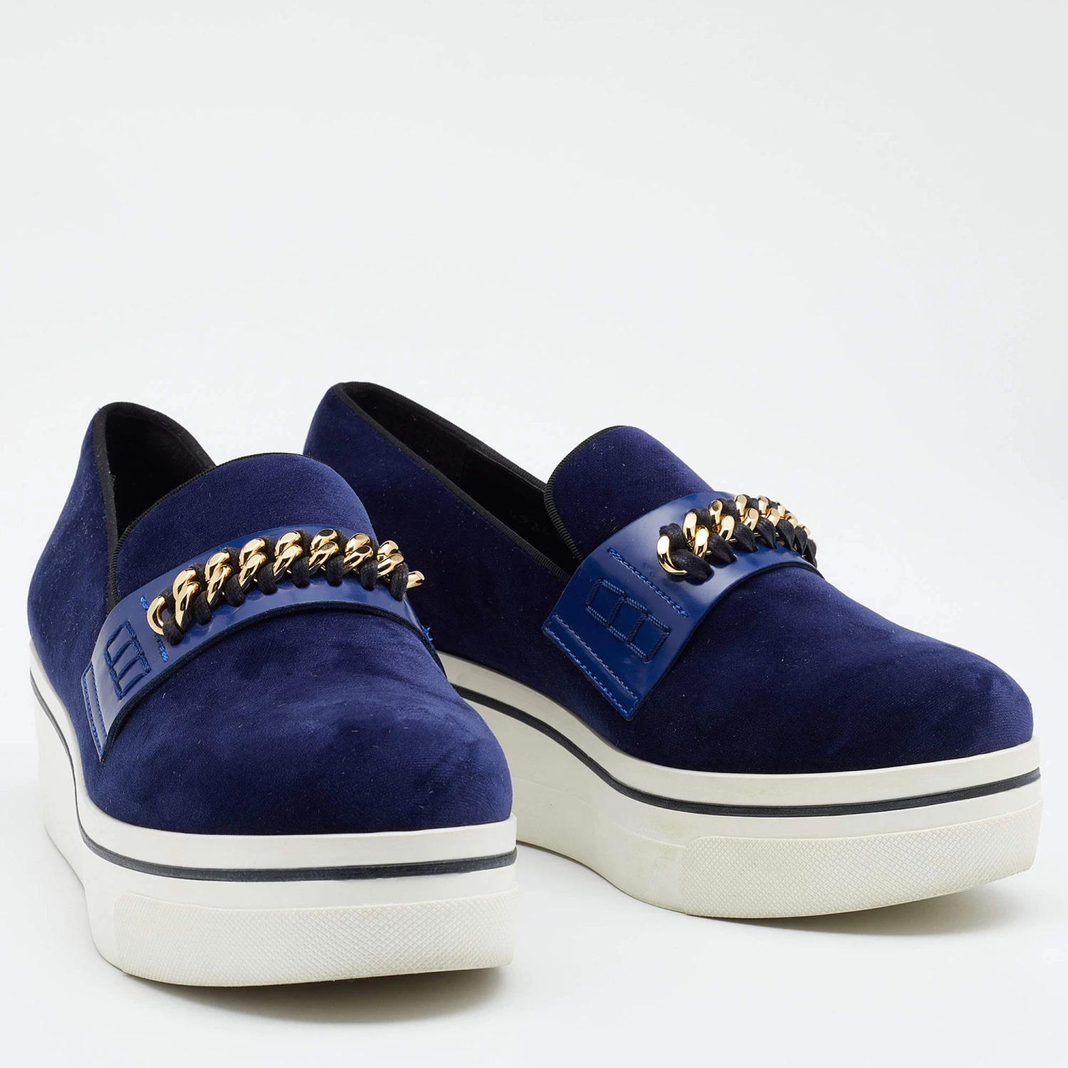 Stella McCartney Blue Velvet And Faux Leather Binx Chain Platform Loafers Size 38 For Women