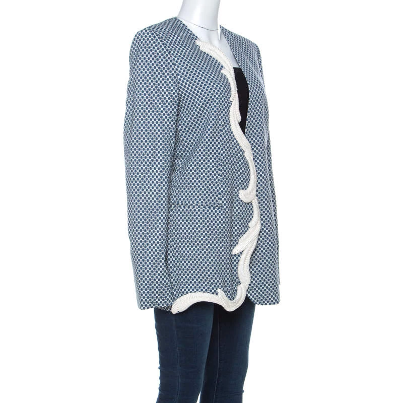 Stella McCartney Blue & White Print Heavy Applique Detail Oversized Blazer M For Women