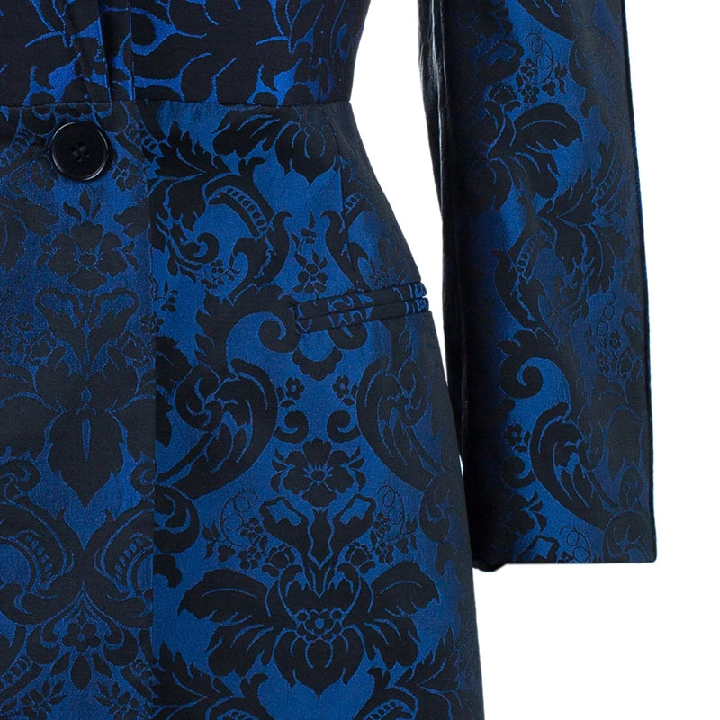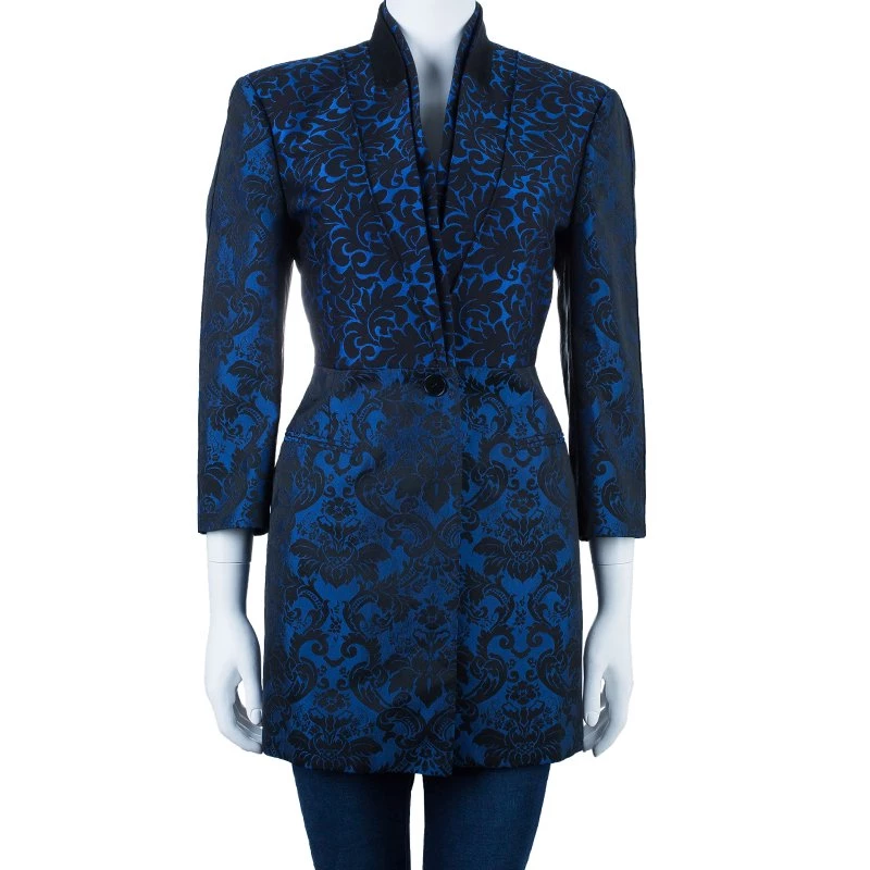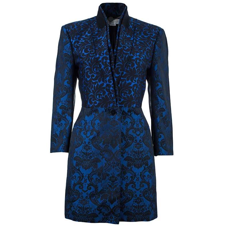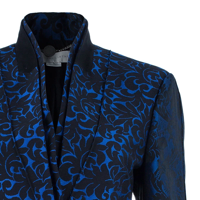 Winters are here and so is the winter’s unique style statement. Adorn this Stella McCartney jacquard jacket for a distinctively beautiful look. It has been crafted in a wool blend in a blue color. The front features lapel collars and button closure while the rear has a middle vent. Combine it with a trouser or denims, it is sure to make you look attractive.