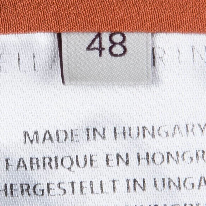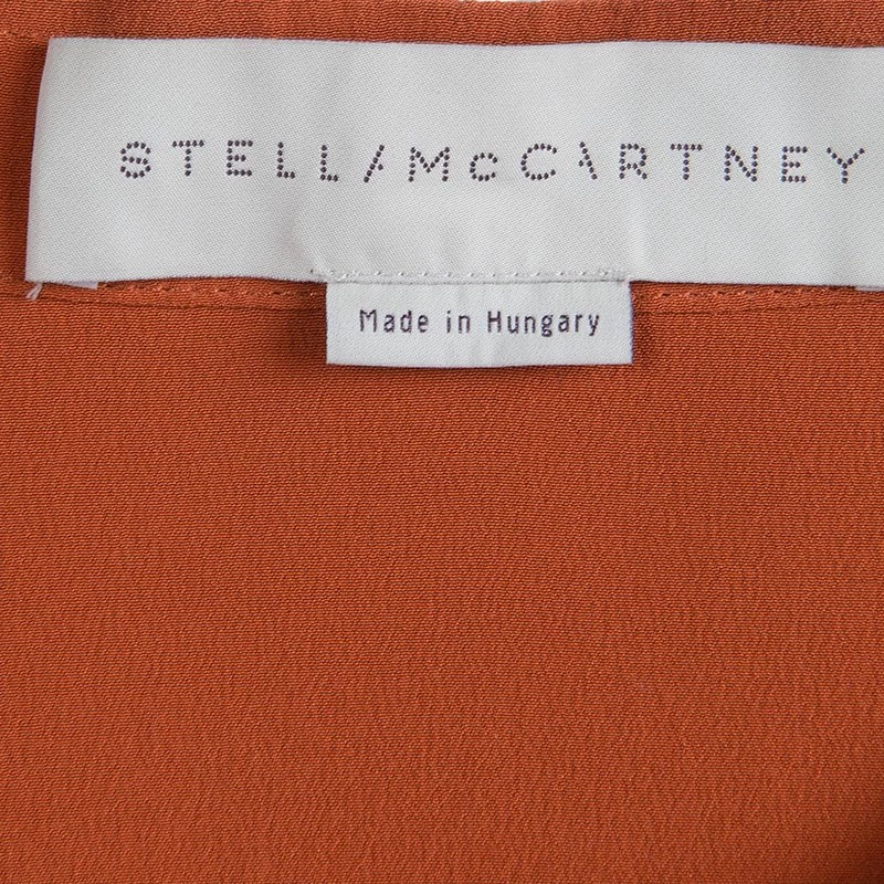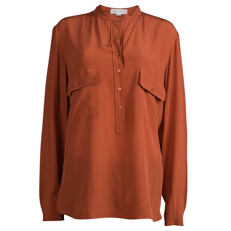 Stella McCartney is known for her impeccable tailoring and bold shapes in her creations. Cut from 100% silk, this blouse features a rich brick-orange hue with long sleeves. It comes with two buttoned chest pockets and a half-way buttoned front. Featuring a slightly loose fit this blouse looks best when styled with dark blue skinny jeans.