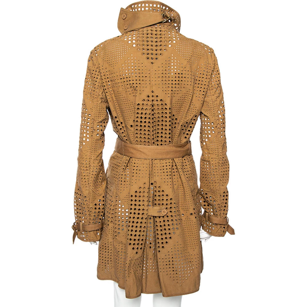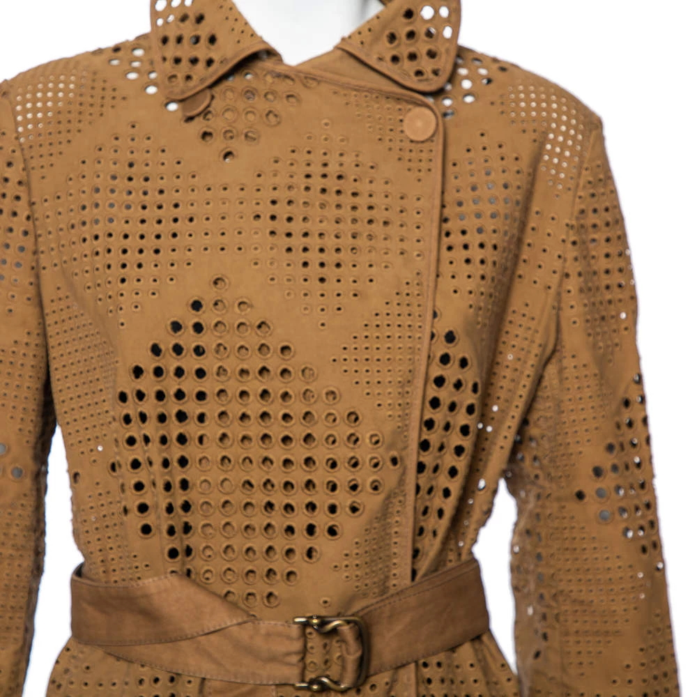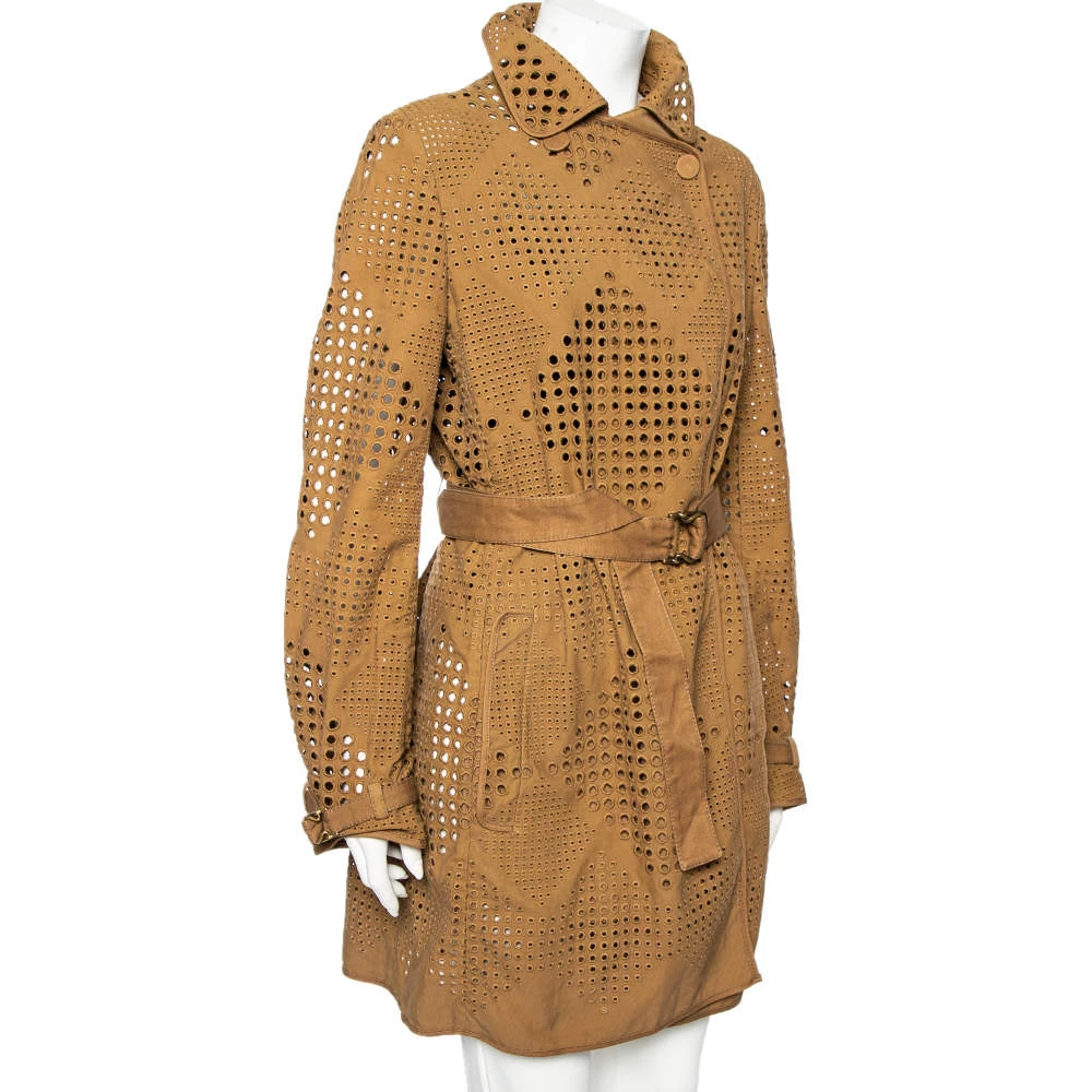 A Stella McCartney trench coat to wear and treasure for years is this one in classy brown. It is made from lace and it has belts added to the long sleeves, buttons at the front, and a matching buckle belt at the waist for a defined silhouette. The coat is not just well-tailored or appealing, it is also lightweight and comfortable. It is from the label’s Resort 2010 collection.