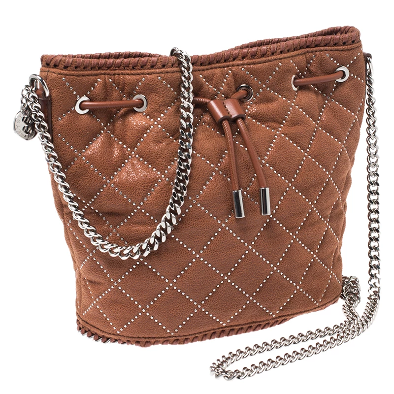 This Falabella bucket bag from Stella McCartney will make the dream of countless women come true. Crafted from faux leather, this brown bag is durable and stylish. The exterior boasts a quilted pattern as well as a drawstring closure. While the chain detailing elevates its beauty, the nylon-lined interior will dutifully hold all your daily essentials. You are sure to make hearts skip when you swing this bag using the chain strap.