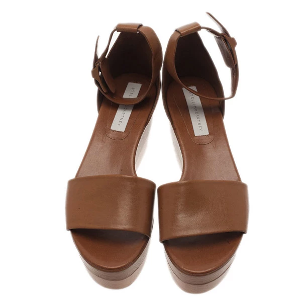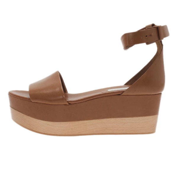 These casual Lindsay wedges are part of the 2014 collection. Made from brown faux leather, the pair has an ankle strap with a side buckle fastening, 3.5 cm wedge heel and a platform sole.
