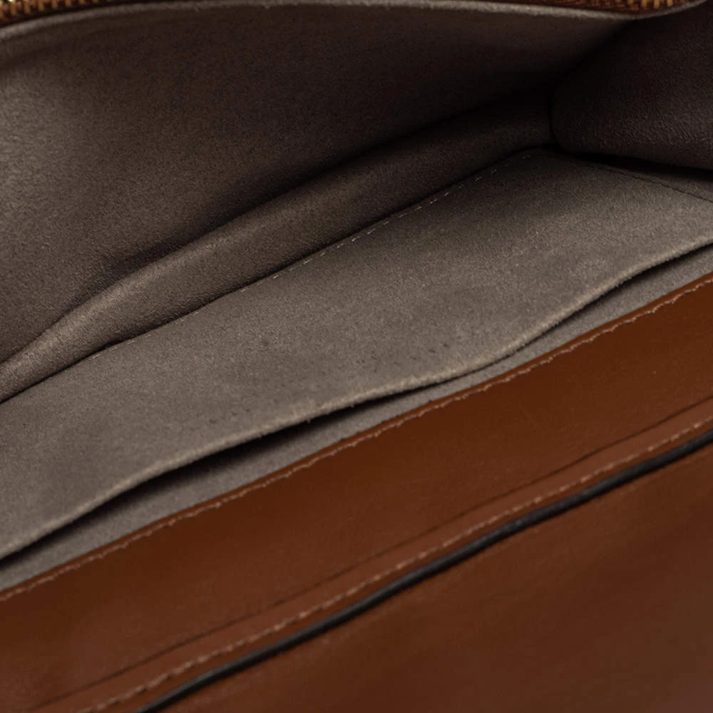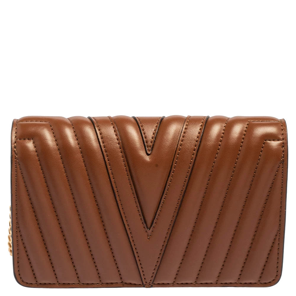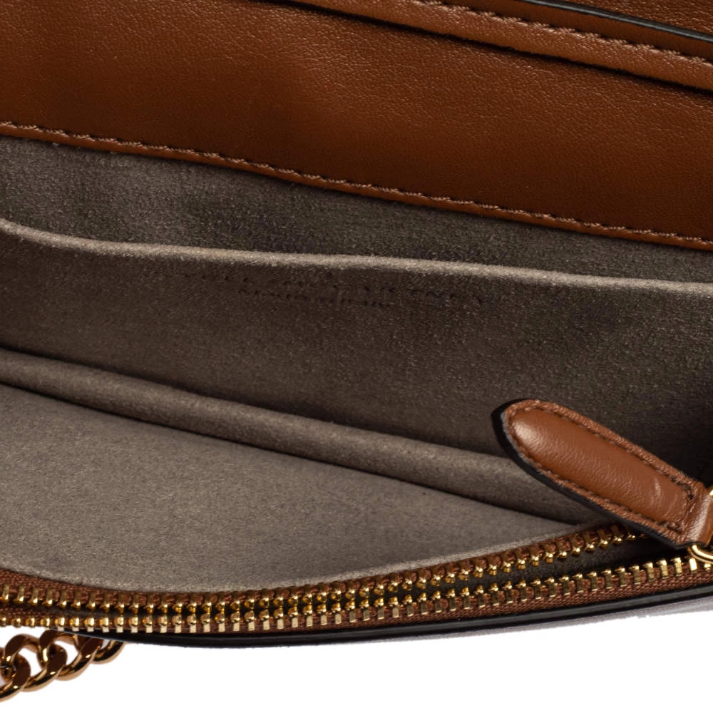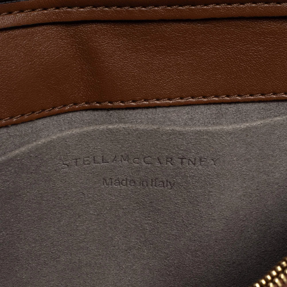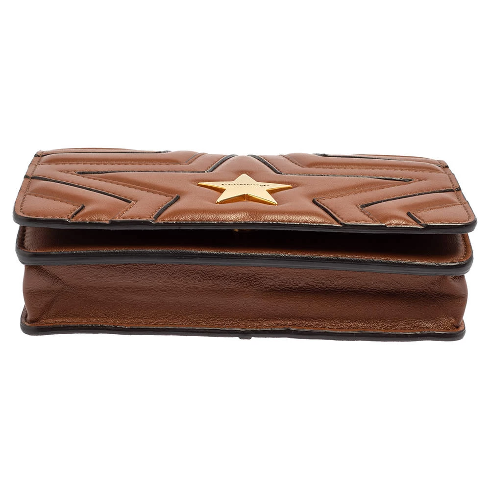 Make a wonderful appearance by adorning this plush bag by Stella McCartney. Crafted from faux leather, it comes in a lovely shade of brown. It features a quilted star pattern and the brand’s logo makes an appearance on a star-shaped emblem on the front flap. The Alcantara-lined interior is sized to house your essentials. The bag is complete with a gold-tone chain-link strap.