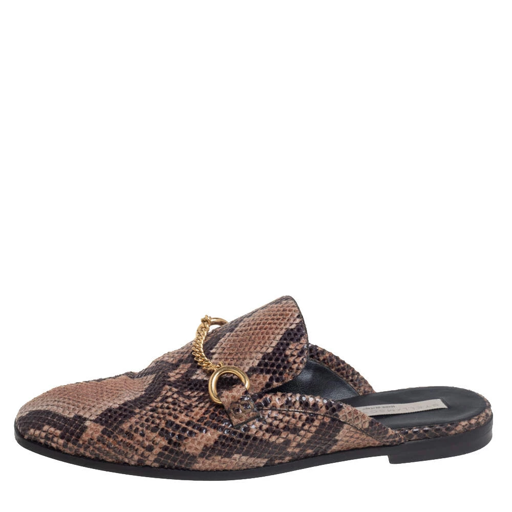 To perfectly accompany your attires, Stella McCartney brings you this pair of flats that speak nothing but beauty. They’ve been crafted from faux python leather and decorated with gold-tone chain trim detailing on the vamps. The comfortable flats are easy to slip on and they are just the right choice to complement your fashionable side.