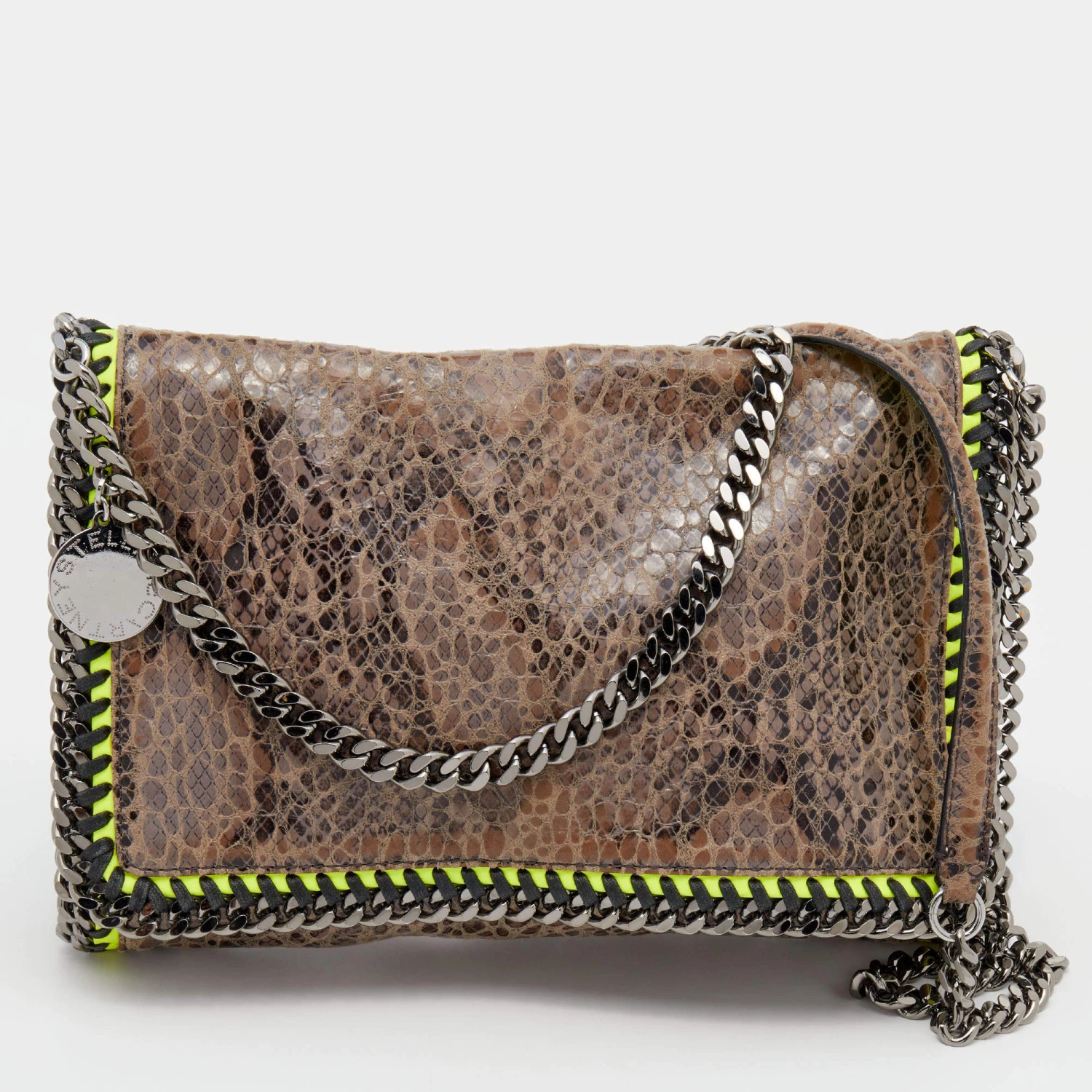 This Falabella crossbody bag from Stella McCartney exudes the right amount of class and style. Crafted from brown-neon green faux snakeskin leather, this bag is adorned with a chain strap and gunmetal-tone hardware. It accommodates a nylon-lined interior. Make this bag yours today and experience never-ending luxury.