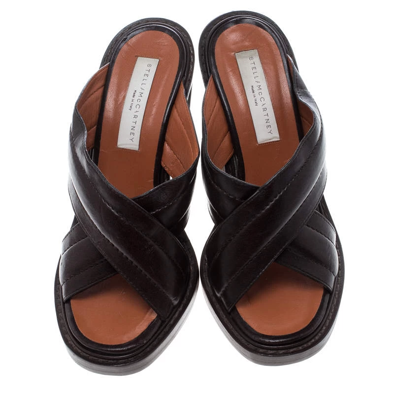 Gift yourself an effortlessly stylish look with these Veneer mules from the house of Stella McCartney. Masterfully designed in a brown faux leather body. they feature cross-over straps carrying a quilted pattern. They are set on comfortable block heels that can work all day or night. The understated appeal of this pair will complement a variety of your outfits.