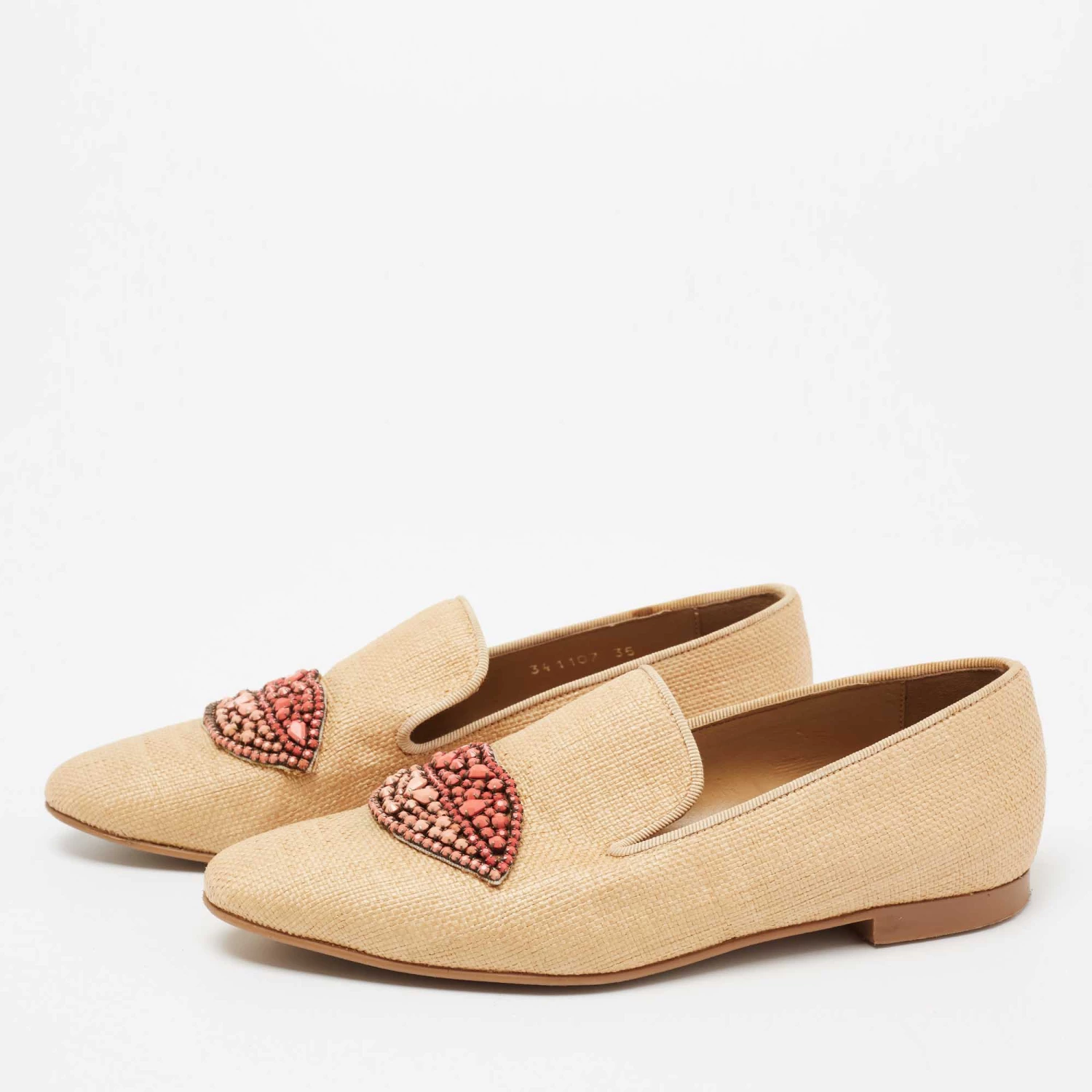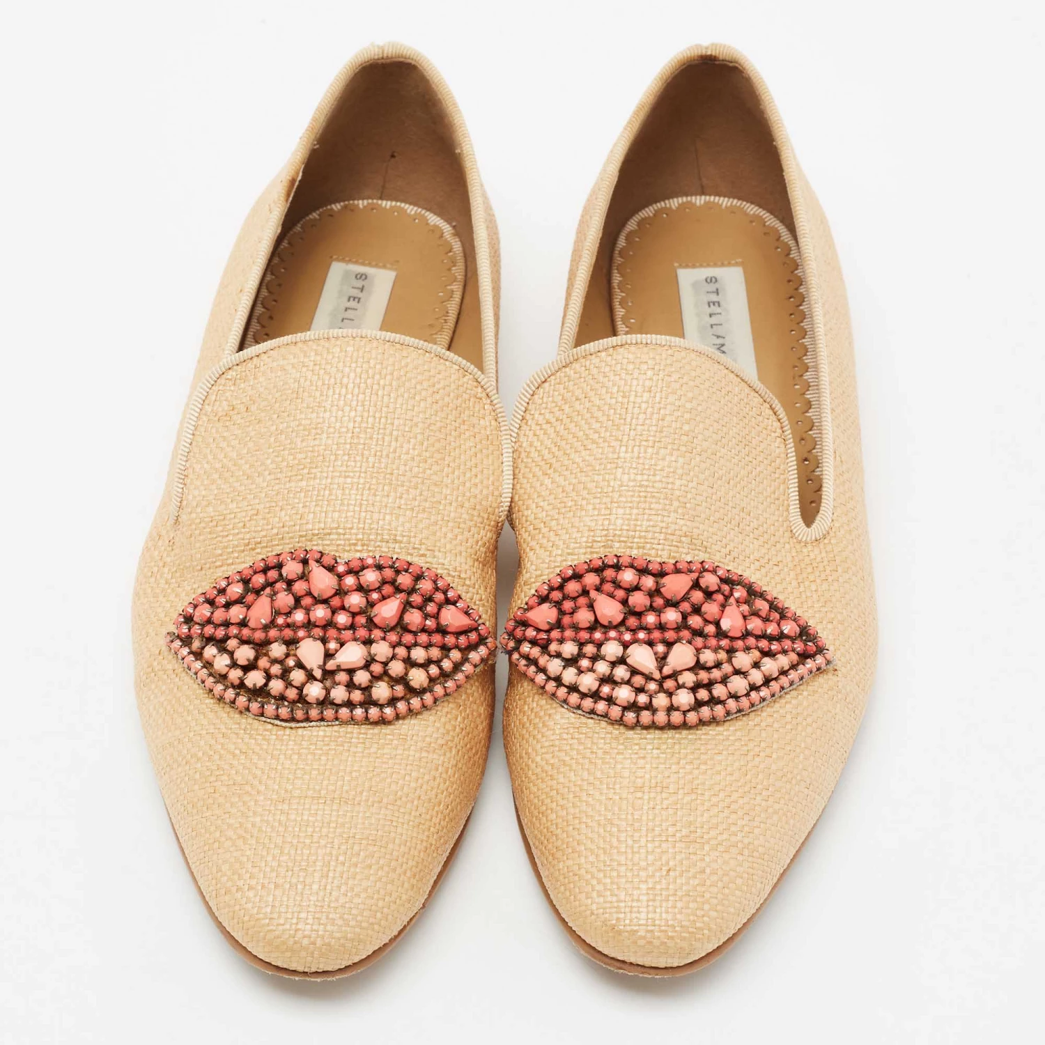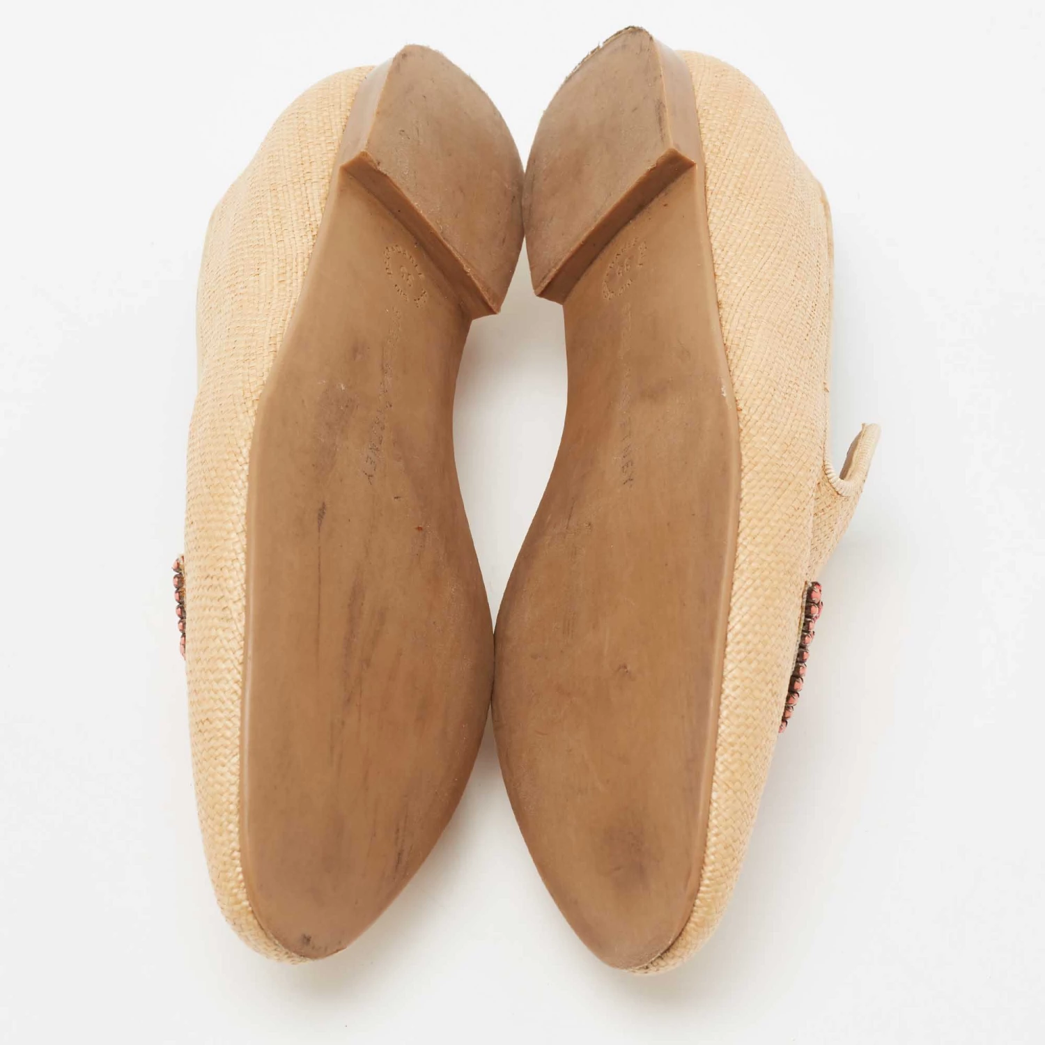 Stella McCartney Brown Woven Raffia Embellishment Tatami Smoking Slippers Size 35 For Women