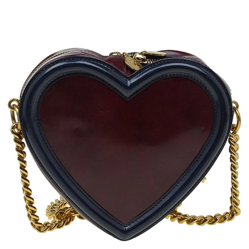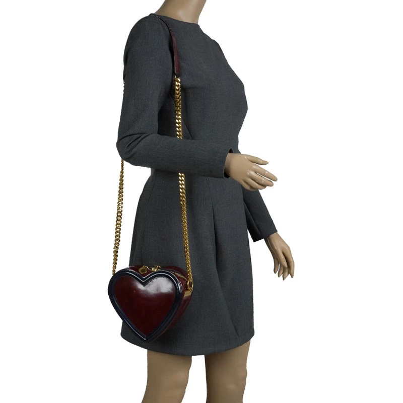 This Stella McCartney crossbody bag has our hearts- quite literally! Designed in a heart shape, this bag feature a burgundy body with black faux detailed edges. This bag features a chain and leather shoulder strap and is secured with a top zip closure. Stand out from the crowd with this stunning piece and prep to win compliments.