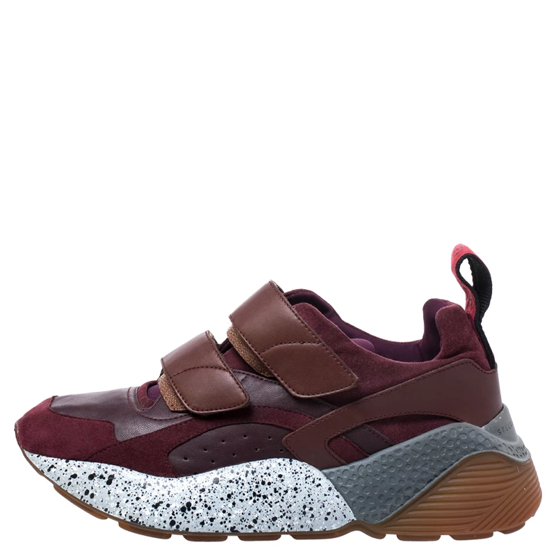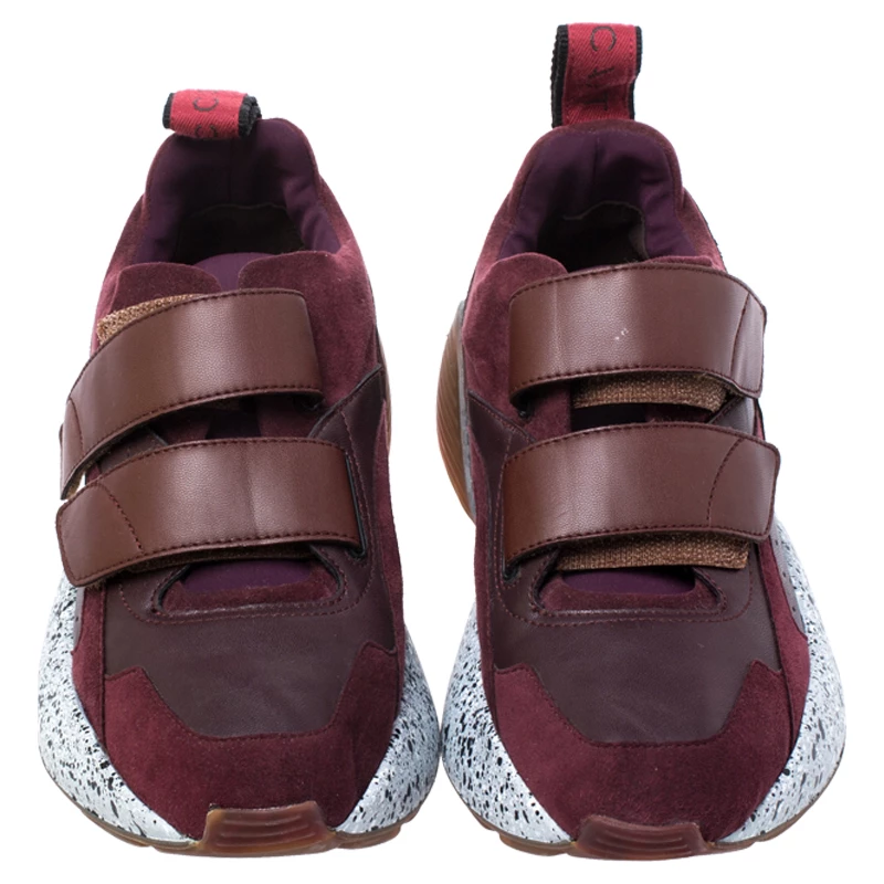 Stella McCartney Burgundy Fabric And Faux Suede Eclypse Lace Up Sneakers Size 39 For Women