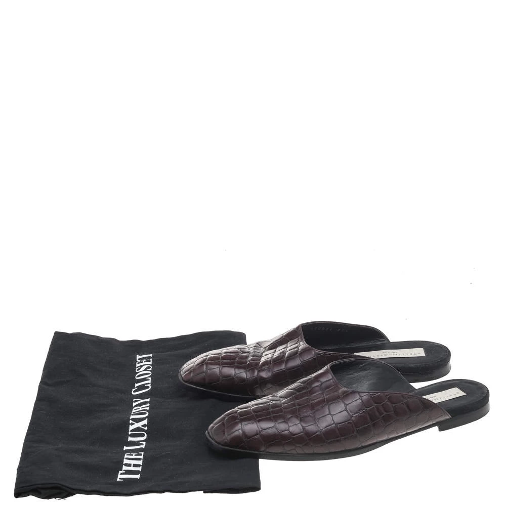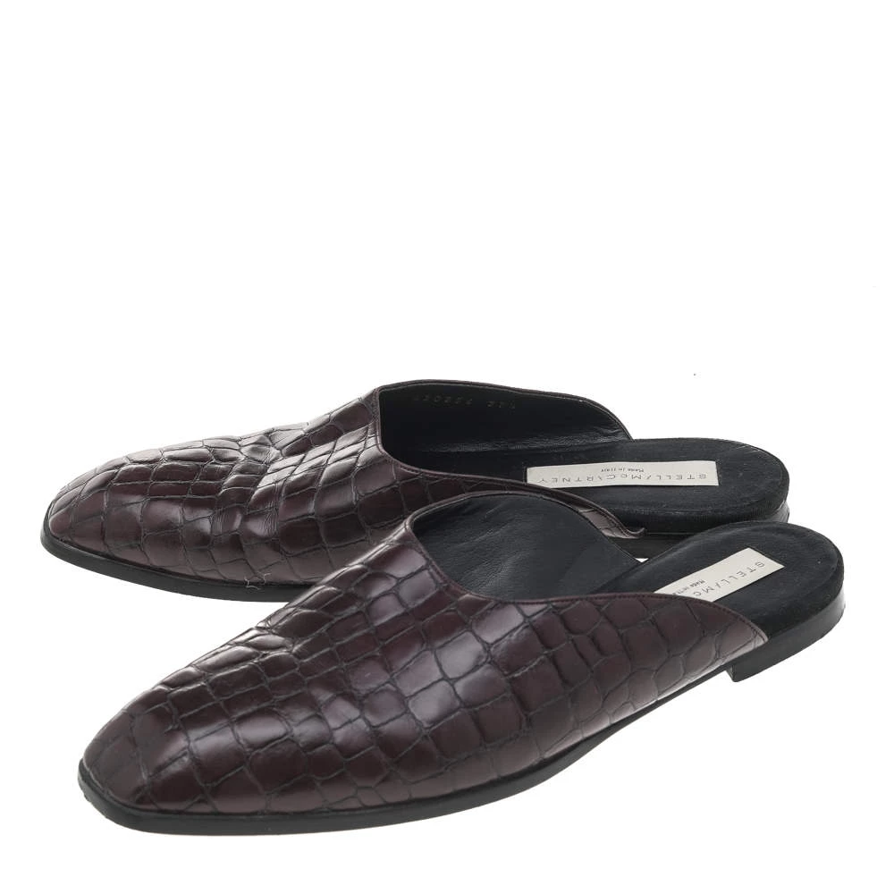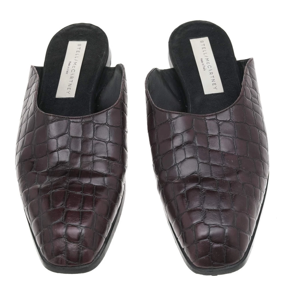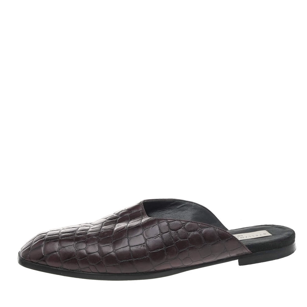 To complement your elegant ensemble with utmost ease and comfort comes these mules from Stella McCartney. Designed with covered toes and low heels, the faux leather exterior of the pair is beautifully adorned with croc embossing, giving the design a distinguished touch.