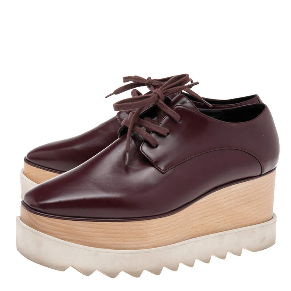 Stella McCartney exhibits her high style and unique fashion taste with these Elyse shoes. They are crafted from smooth faux leather and styled with rounded toes, lace-ups on the vamps, and layered platforms. Grab this pair today and let it help you express your fabulous style.