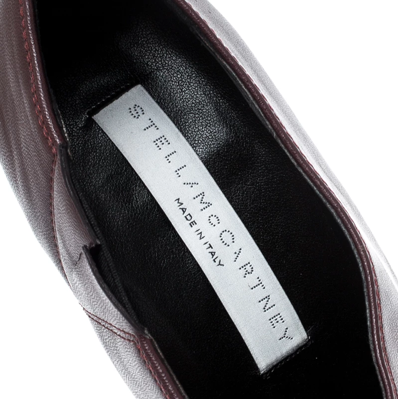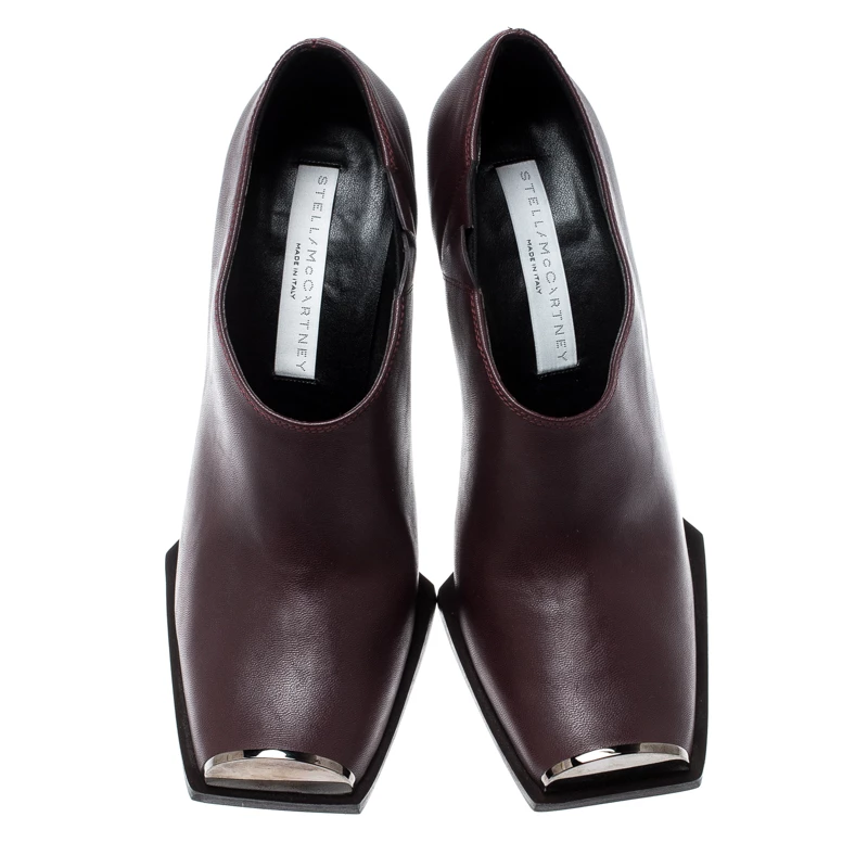 Chic, stylish and very modern, these Stella Mccartney ankle boots are perfect for the fashionable you! The burgundy boots are crafted from faux leather and feature square toes with gunmetal hardware detailing. They come equipped with comfortable insoles and 11 cm heels. Pair them with cuffed denims for your fashionable outings.