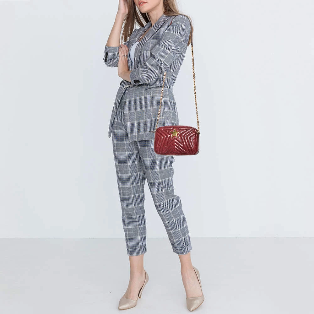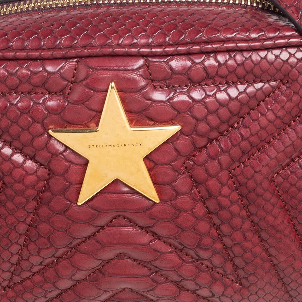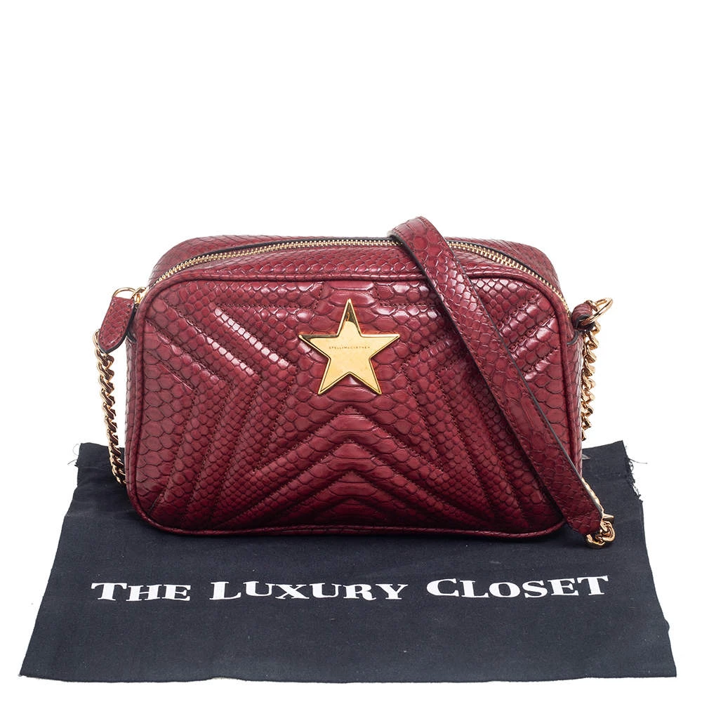 Carefully designed to evoke a grand and stately look, this python-embossed faux leather bag is sure to make heads turn. Its exterior is accented quilted patterns and a gold-tone star motif at the front face. The faux suede lining ensures an immaculate finish. It is complete with a gold-tone chain-link shoulder strap. Fall in love with this absolutely amazing bag from Stella McCartney.