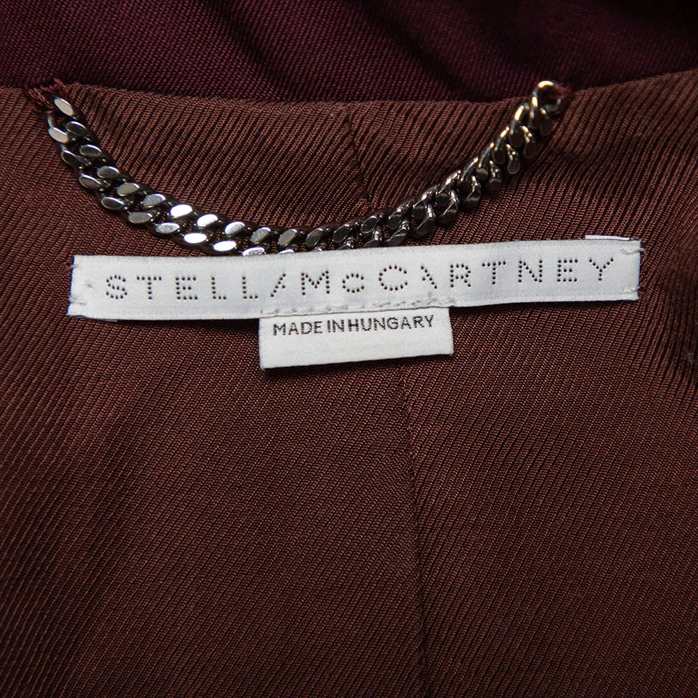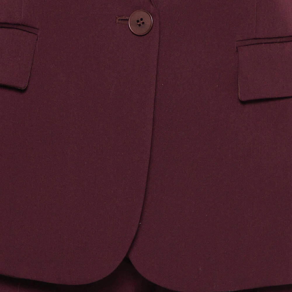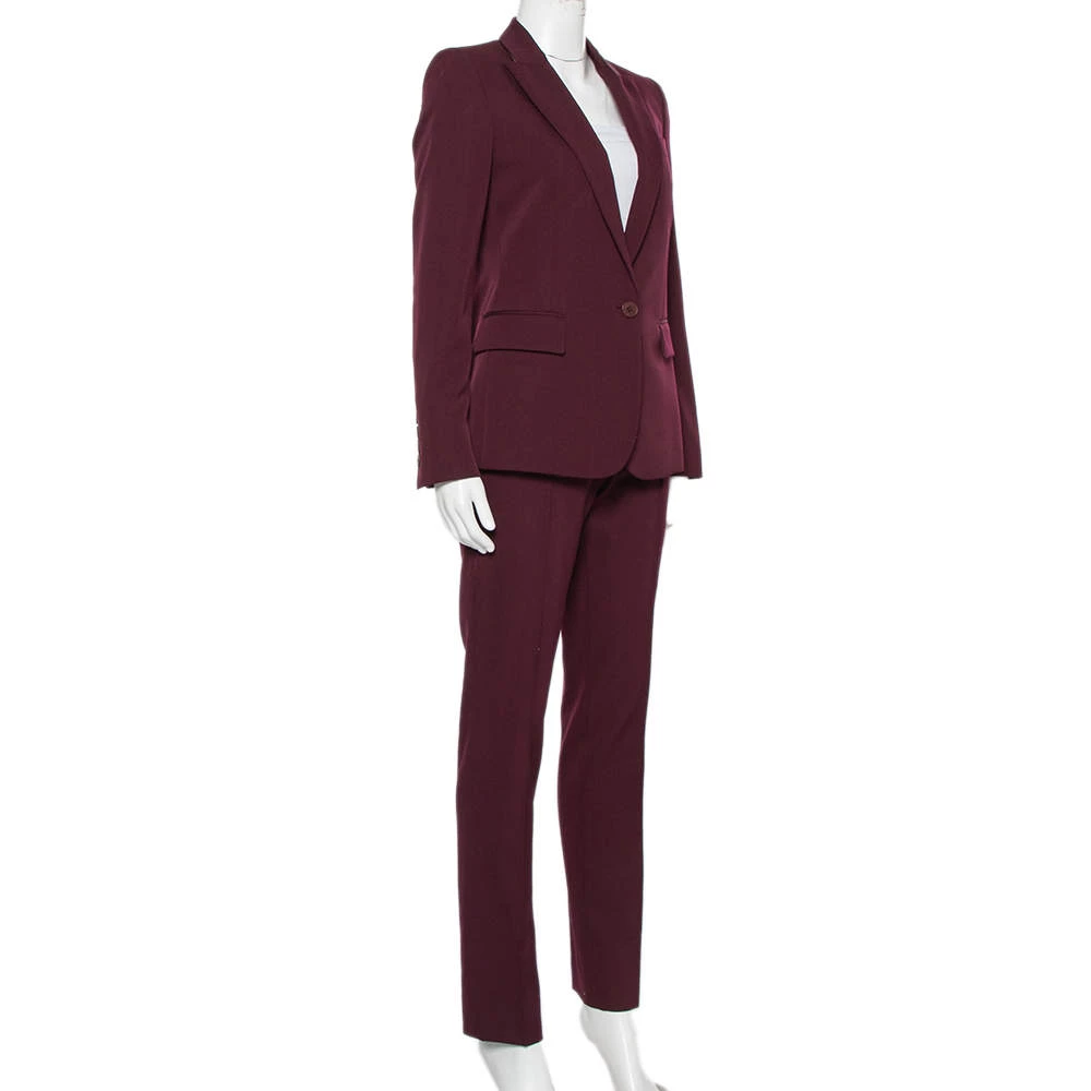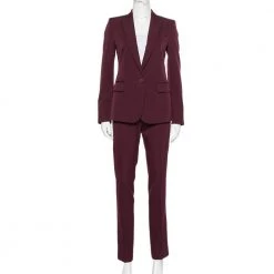 This Stella McCartney pantsuit is brilliantly tailored from burgundy-hued wool. The suit features a button closure, pockets and sleek lapels. The trousers feature four pockets. Pair with a flattering top and high heels for a formal look.