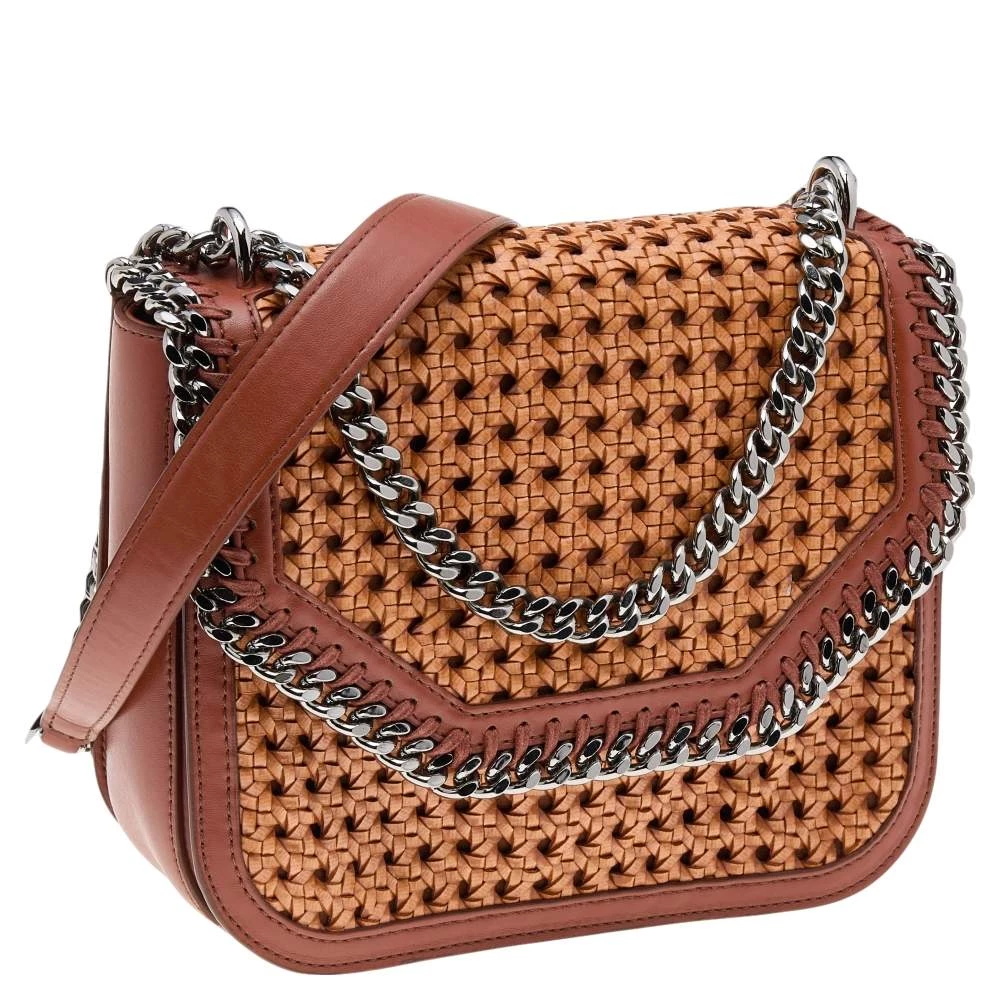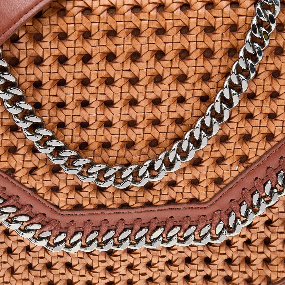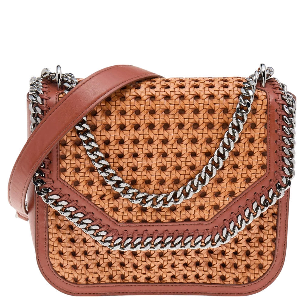 A refreshing version of Stella McCartney’s iconic Falabella bags, this box shoulder bag is chic and elegant. Featuring a diamond-cut front flap detailed with chain-link trims, the woven faux leather bag has a blend of unique details and signature designs.