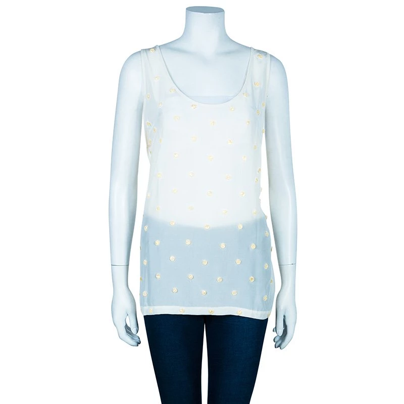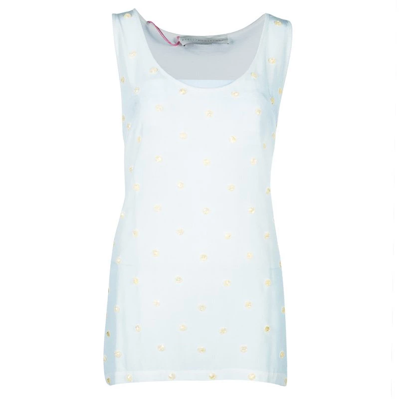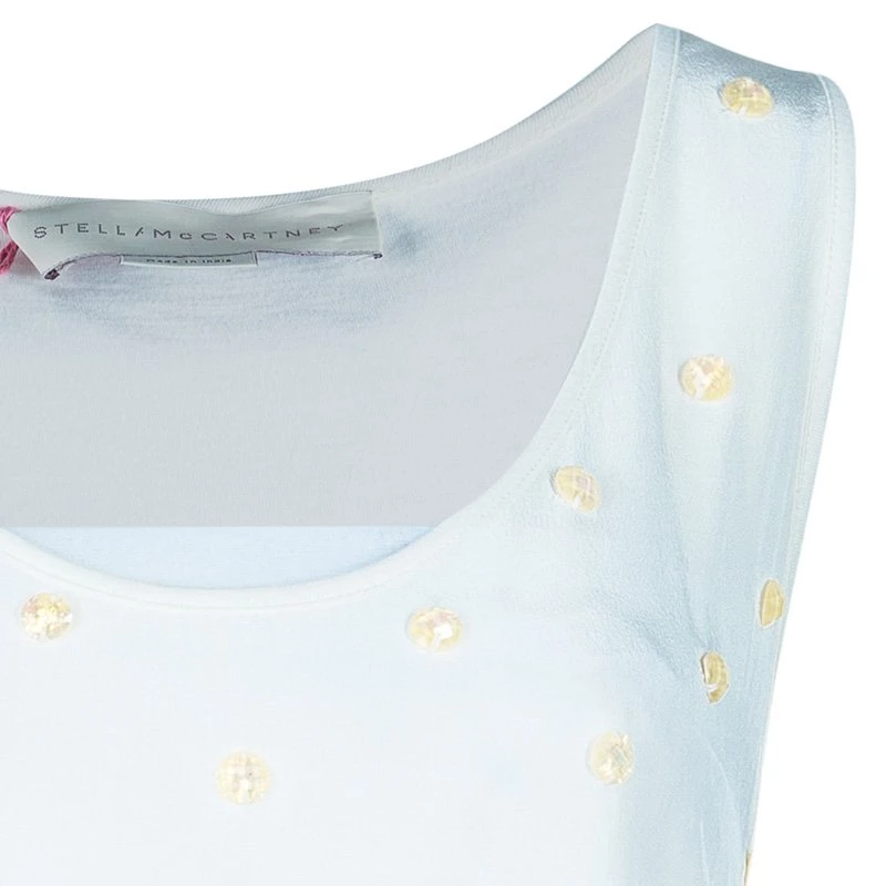 A subtle look made sublime! This outstanding design by Stella McCartney would win you compliments or a classy summer style. This sleeveless top comes crafted in a combination of silk and cotton in white. It features resin beaded front and comes with a below waist length.